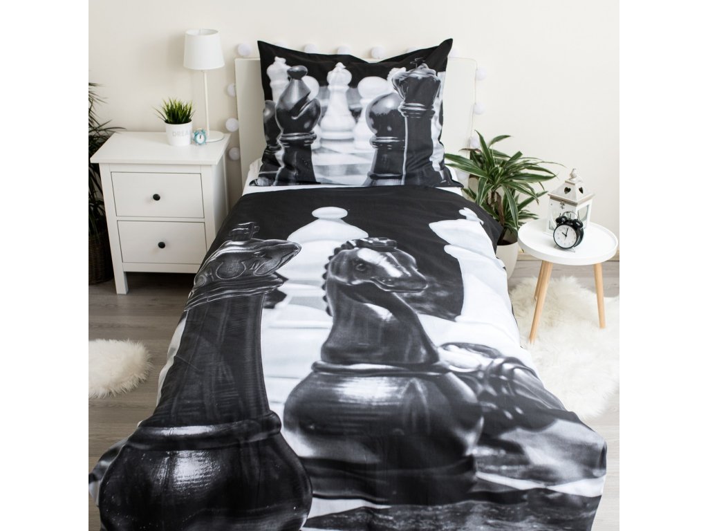 3D Pamučna posteljina CHESS DREAM crno-bijela, 100% pamuk