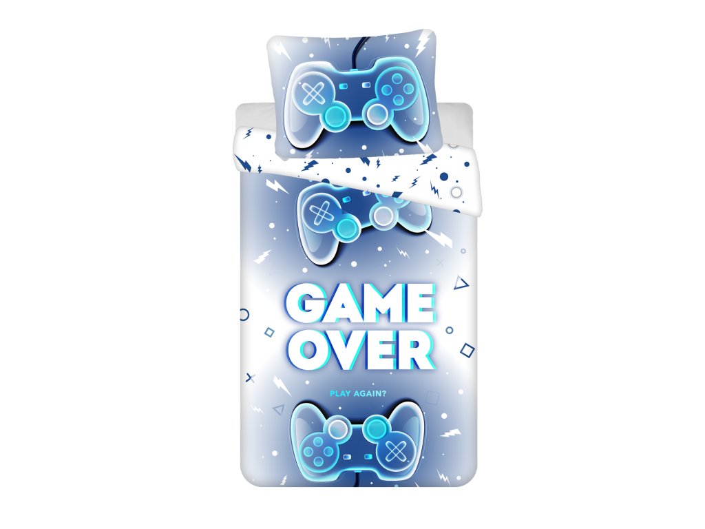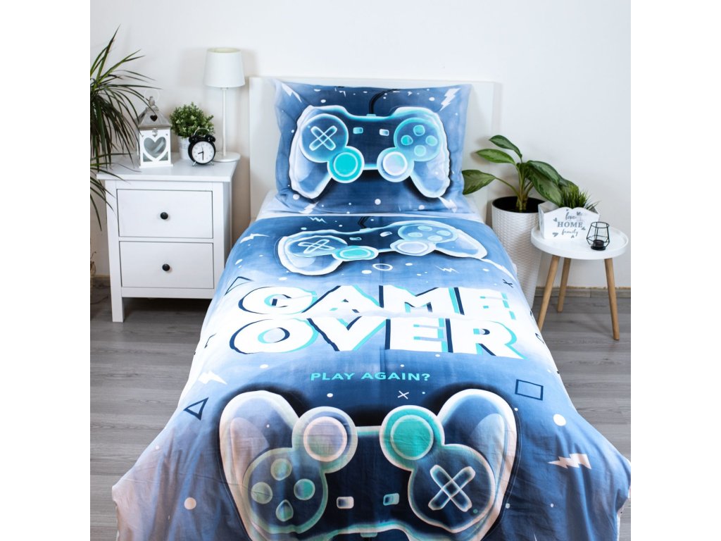 3D Pamučna posteljina GAME OVER plava, 100% pamuk