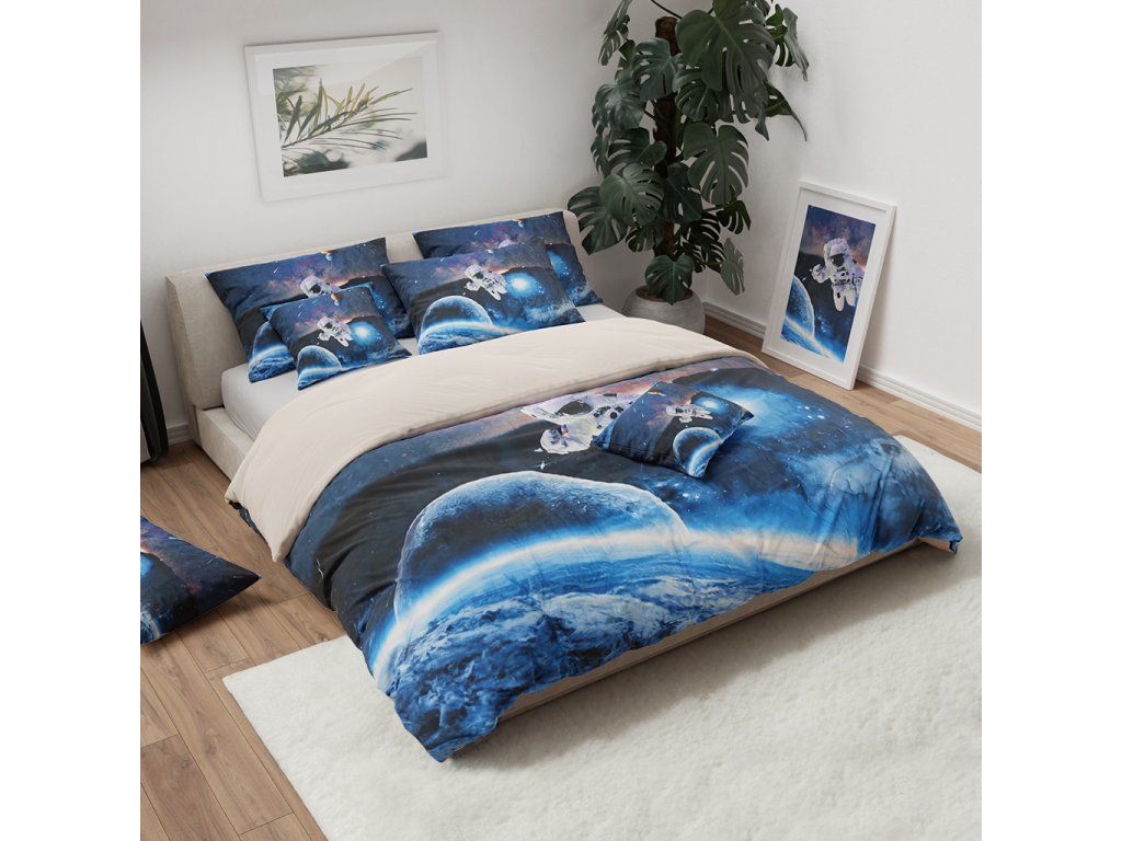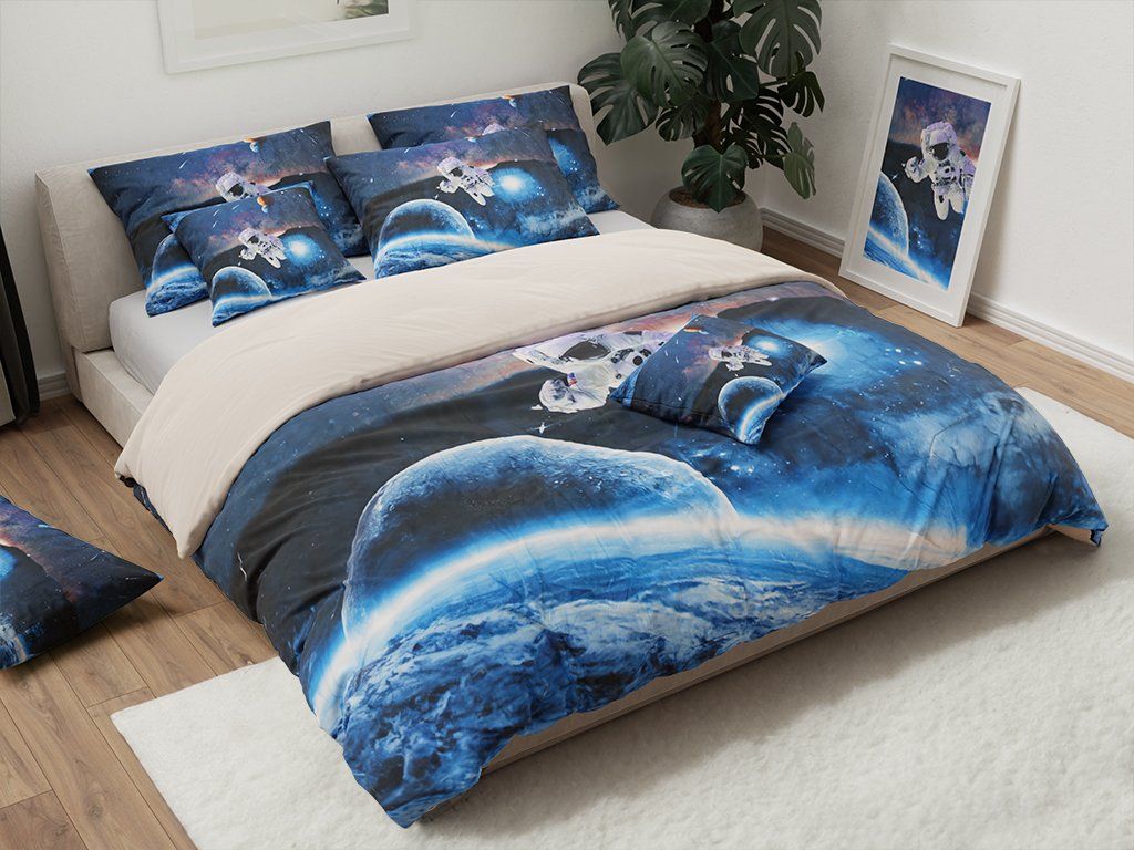 3D posteljina ASTRONAUT plava + jastučnica 40 x 40 cm gratis