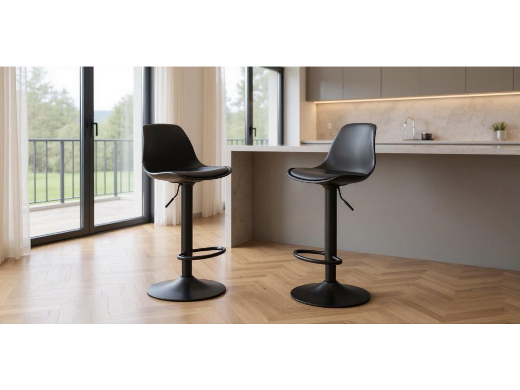 Crna barska stolica HOGA od eko kože s crnom nogom