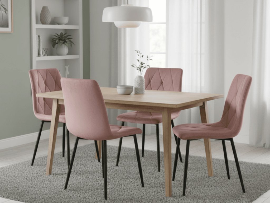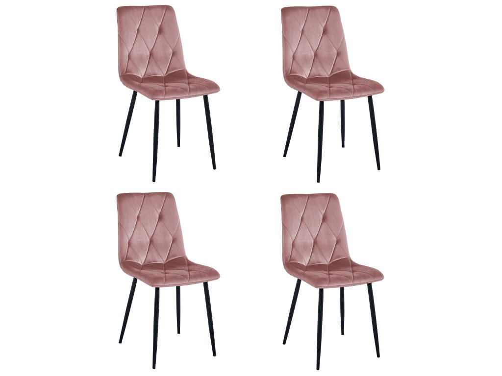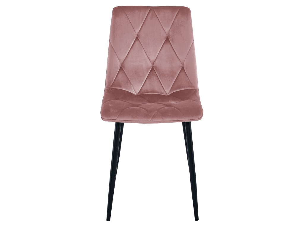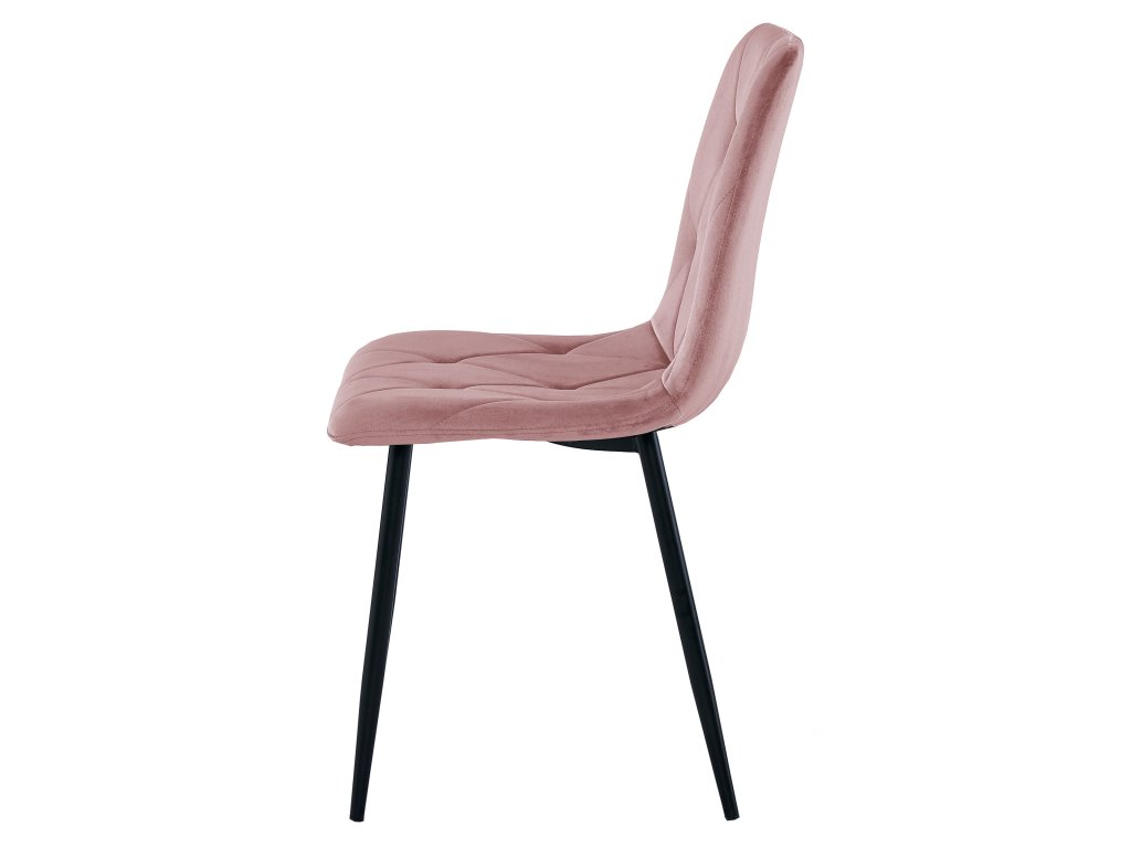 Ružičasta baršunasta blagovaonska stolica LIBRA s crnim nogama