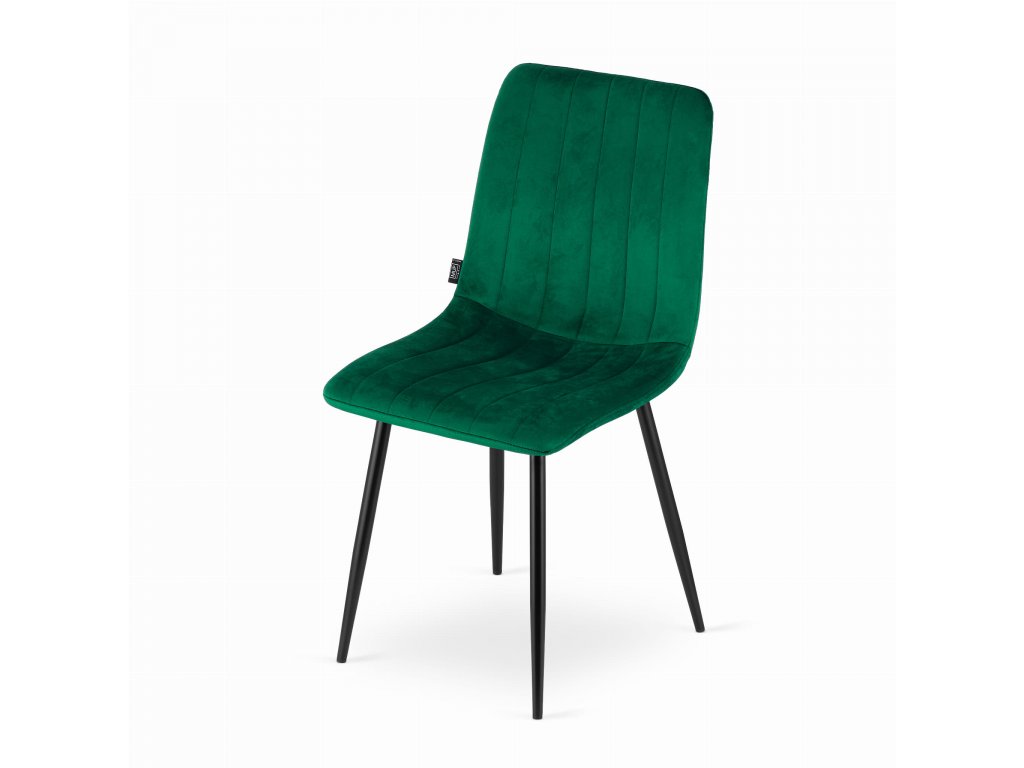 Zelena stolica LAVA baršunasta s crnim nogama