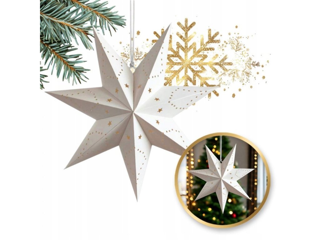 Božićna papirnata zvijezda za vješanje STARLET 35 cm, bijela