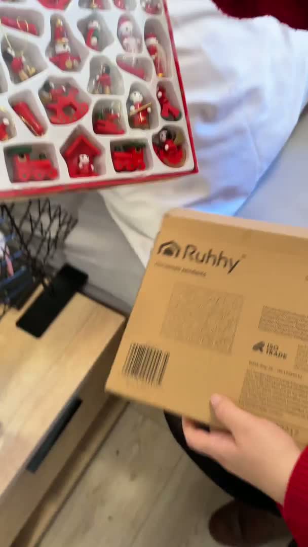 Set božićnih drvenih ukrasa RED JOY crvena, 30 kom