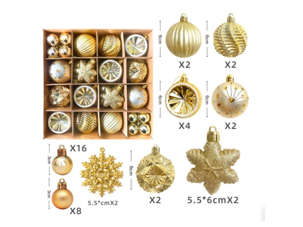 Set božićnih ukrasa STARLING zlatna, 40 kom