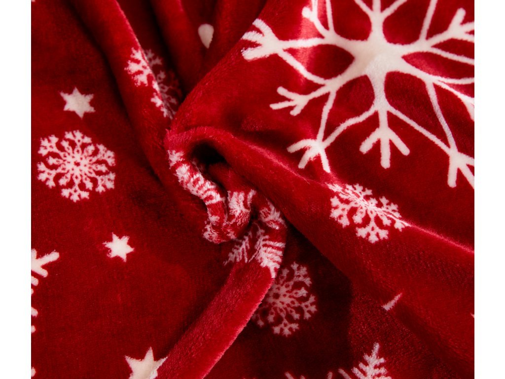 Set 2 kom posteljina mikropliš SNOWFALL crvena + plahta od mikropliša SOFT 180x200 cm bijela, bračni krevet