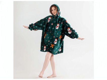 Topla deka s imitacijom ovčjeg krzna, s rukavima i kapuljačom SNOWMAN AND GINGERBREAD zelena
