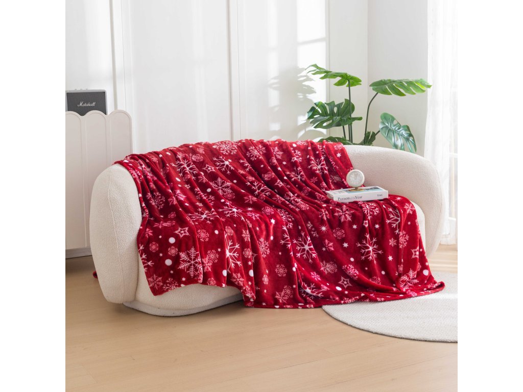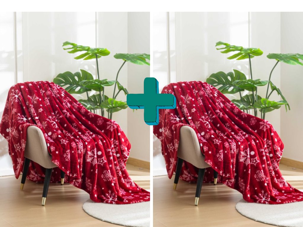 2x Crvena božićna mikropliš deka SNOWFALL 150x200 cm