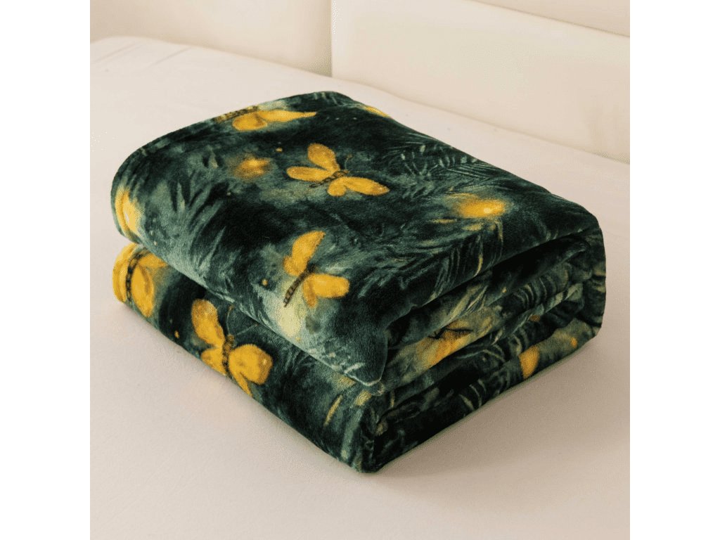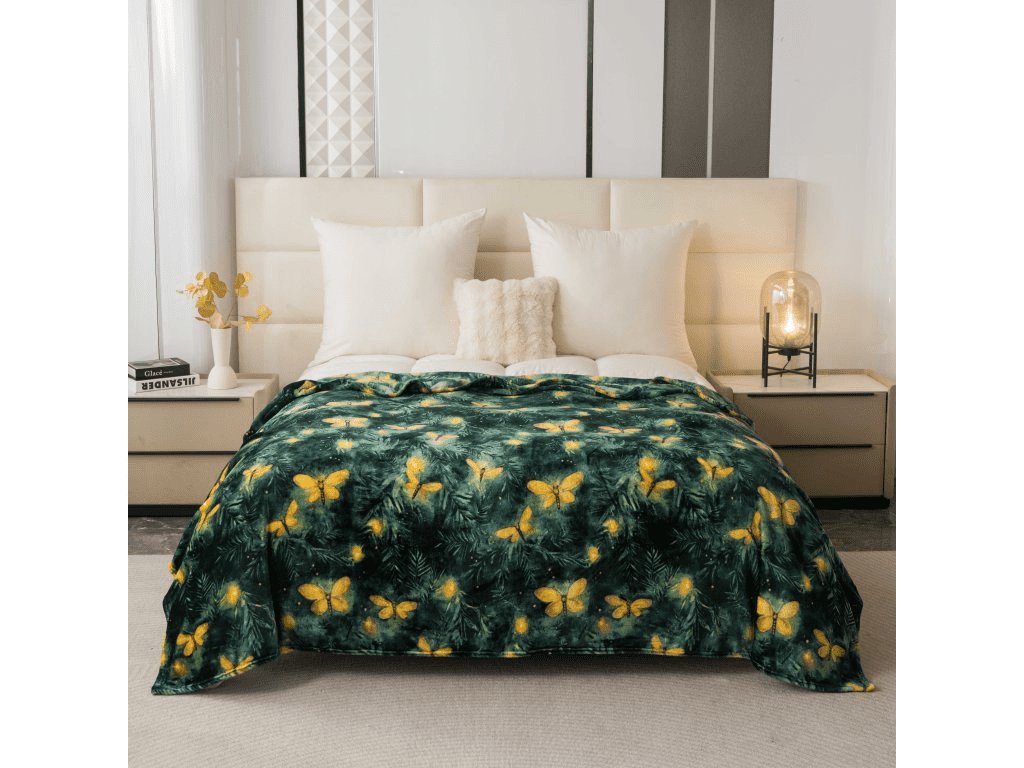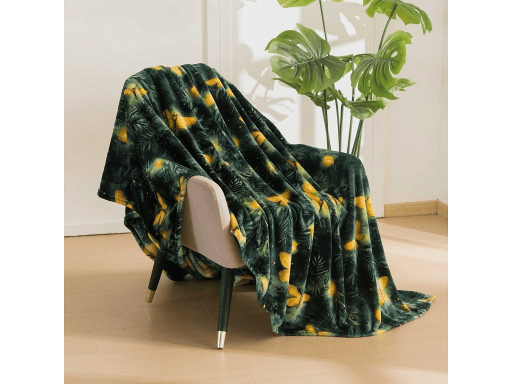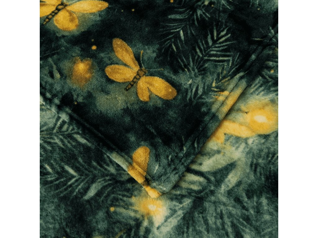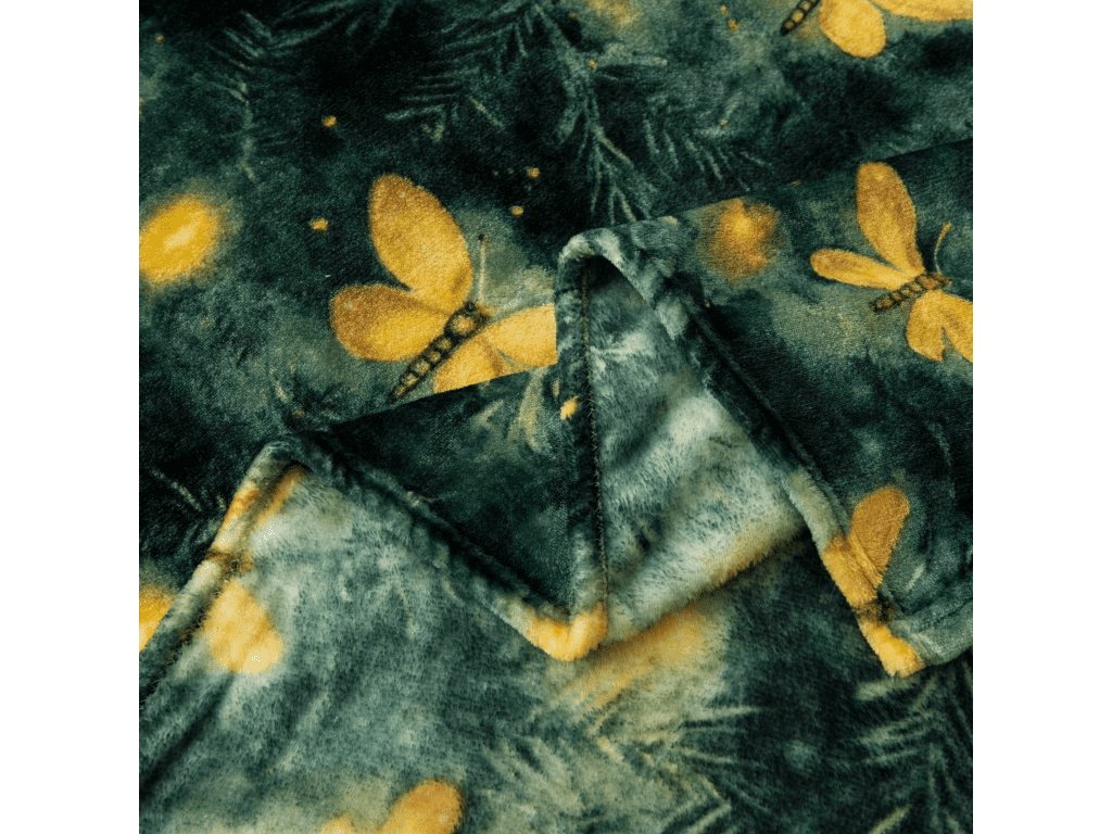 Mikropliš deka YELLOW BUTTERFLY, tamno zelena