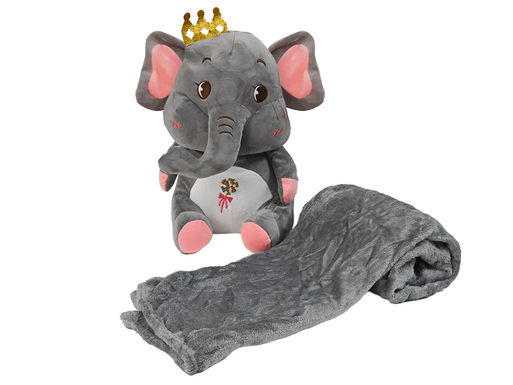 Plišani SLONČIĆ s dječjom dekom unutra, sivi