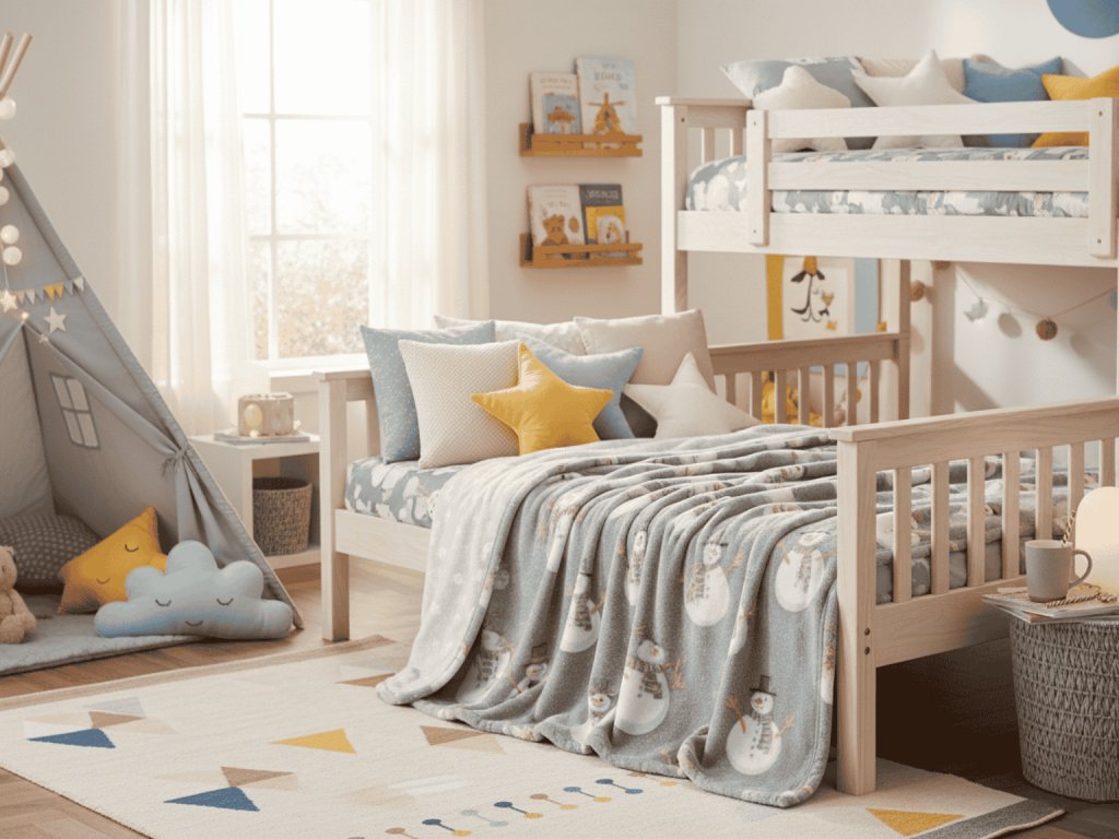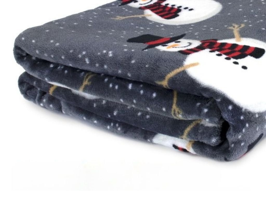 Svjetleća božićna mikropliš deka SNOW BUDDY, siva