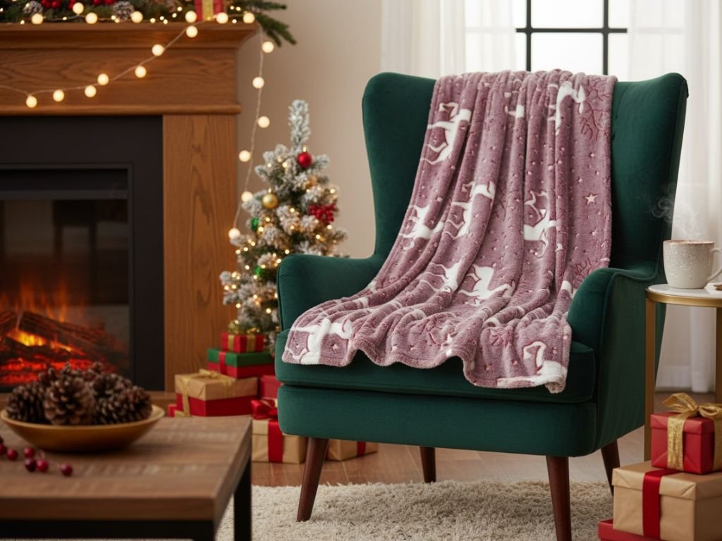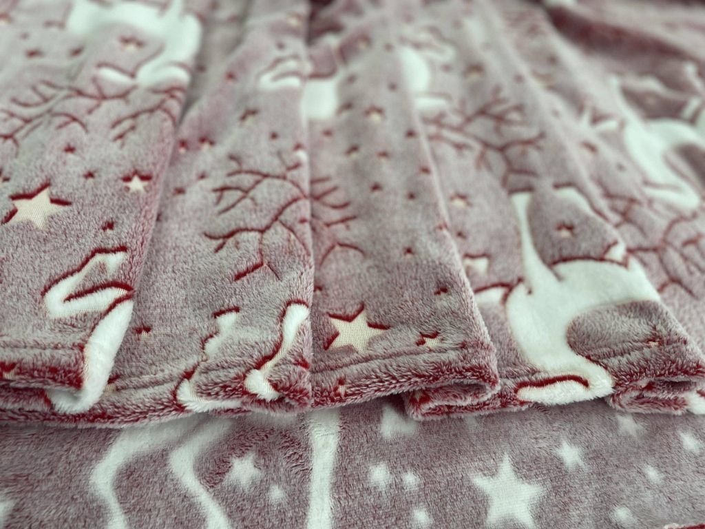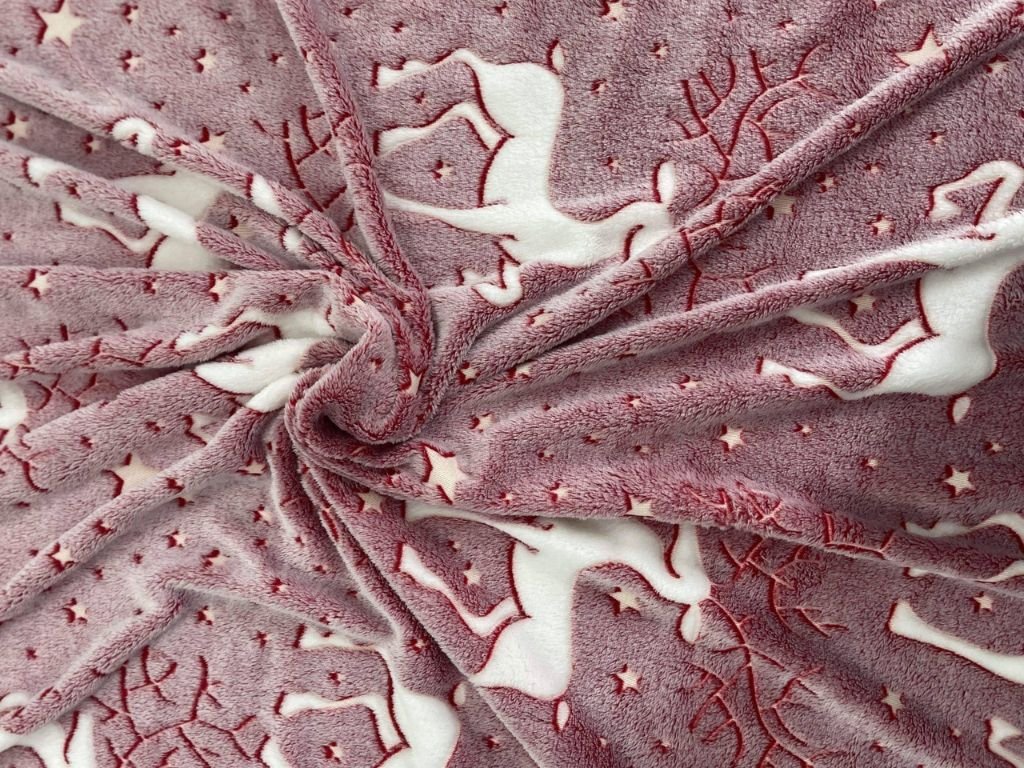 Svjetleća božićna mikropliš deka STAR DEER, crvena