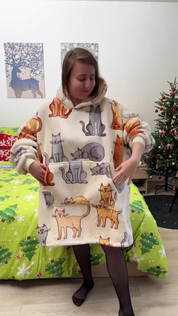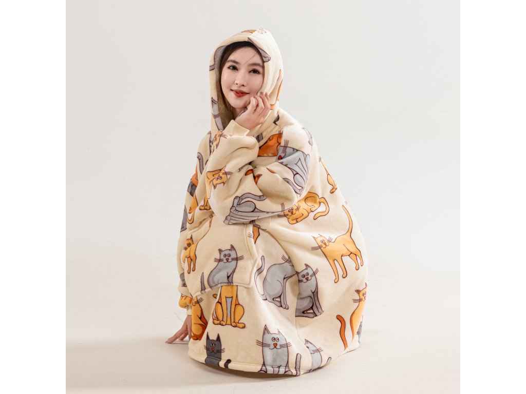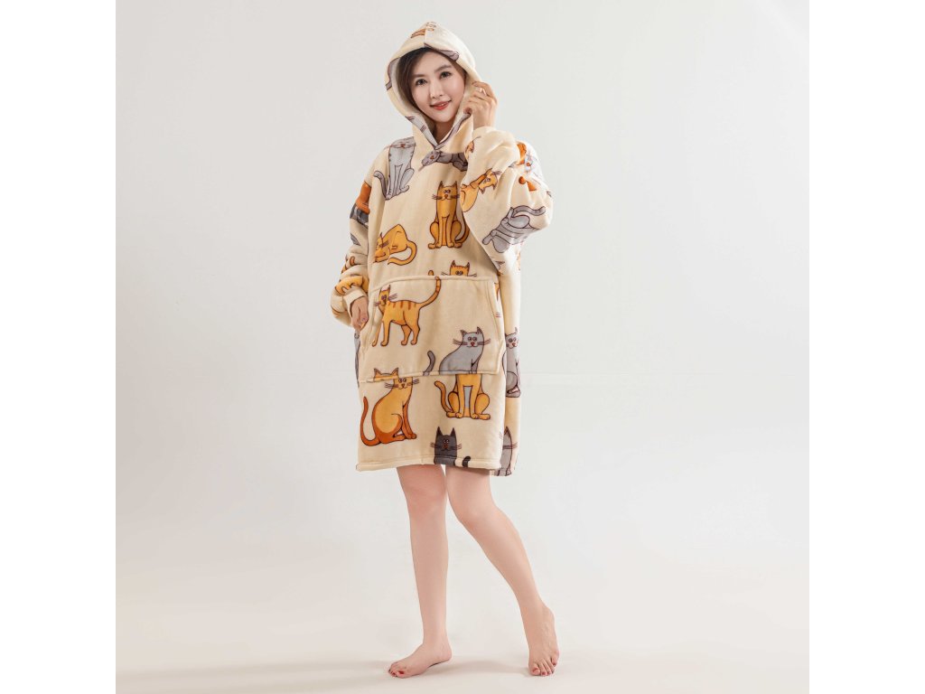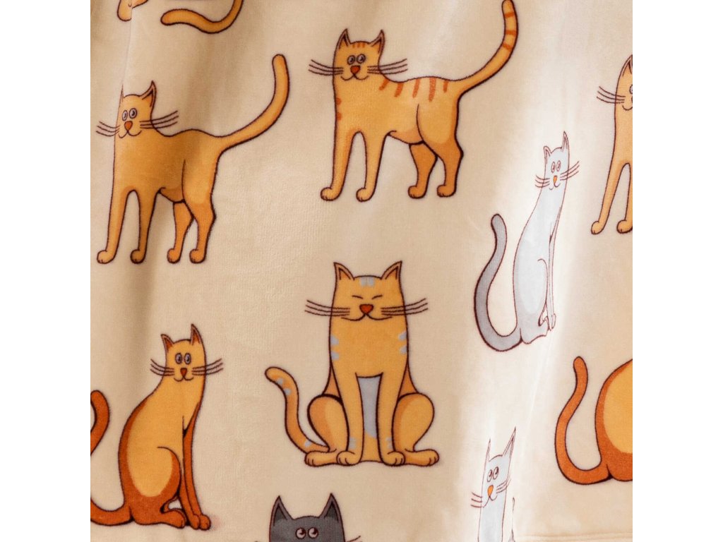 Mikropliš mikinova deka s rukavima i kapuljačom COLORED CATS krem boje