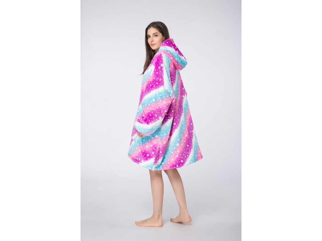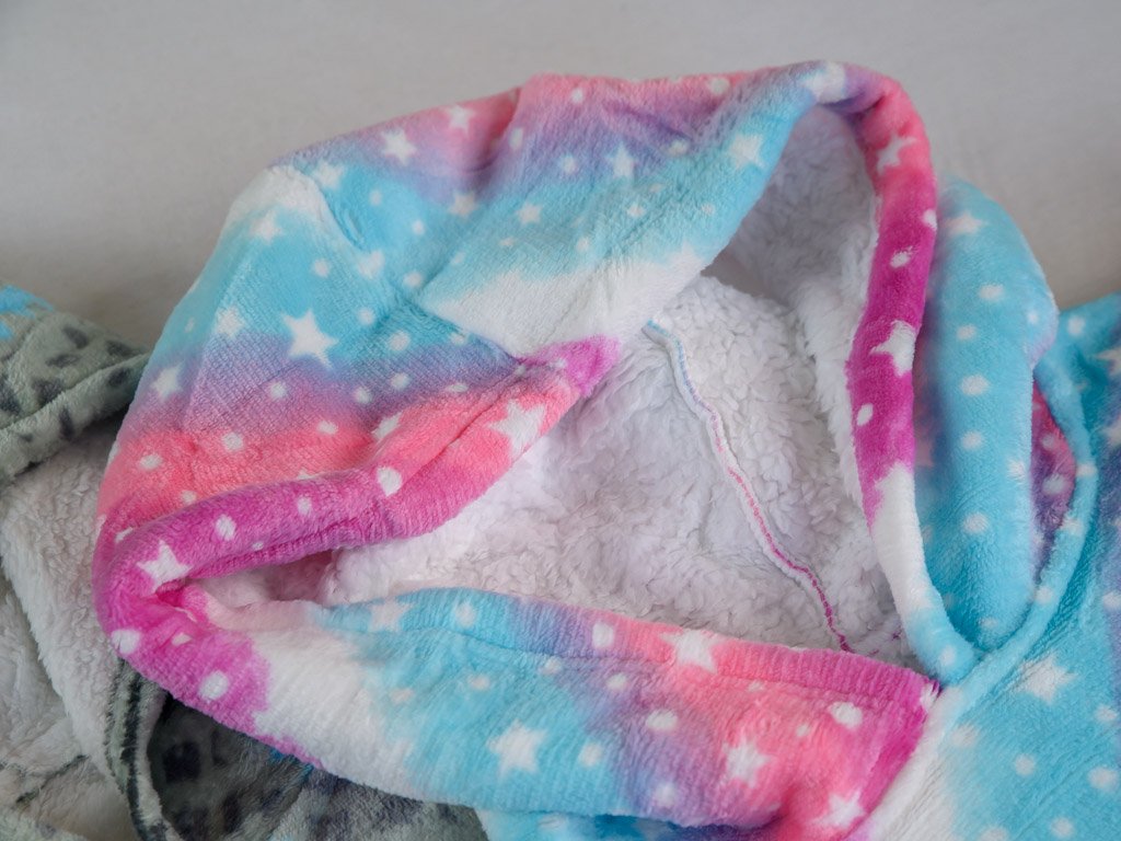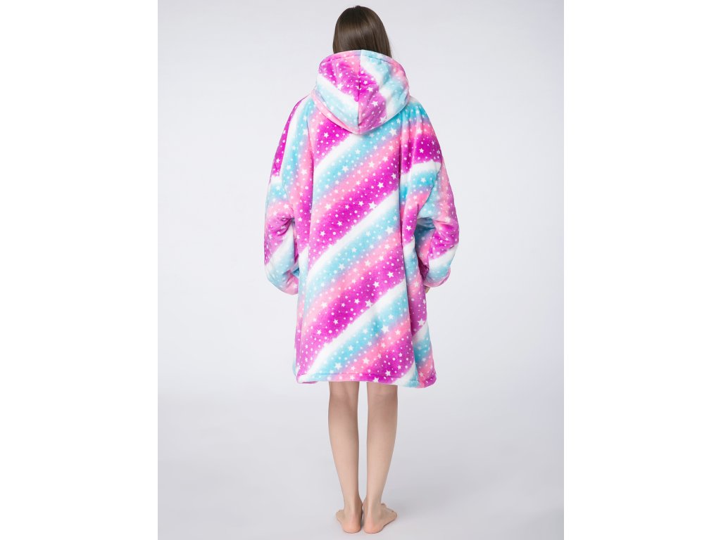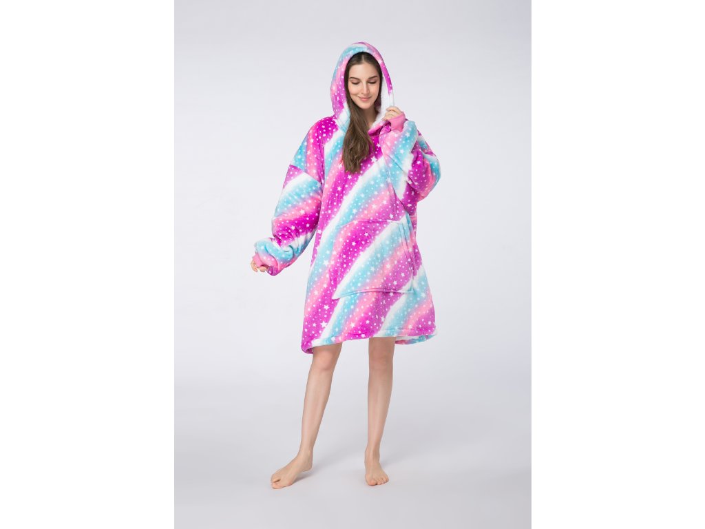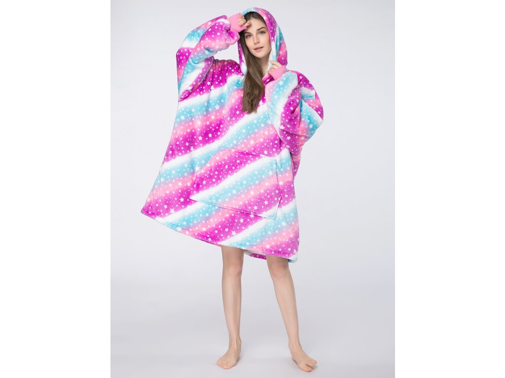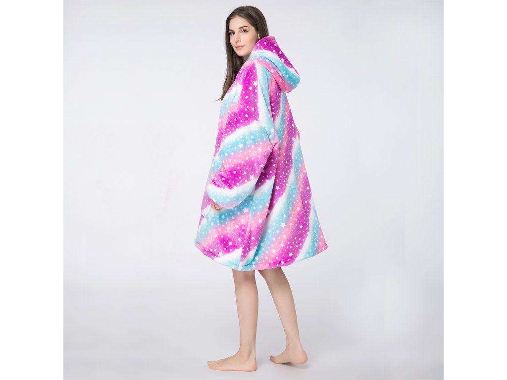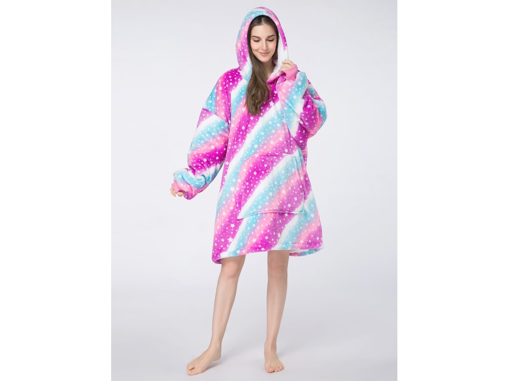 Topla deka s imitacijom ovčjeg krzna, s rukavima i kapuljačom AURORA šarena