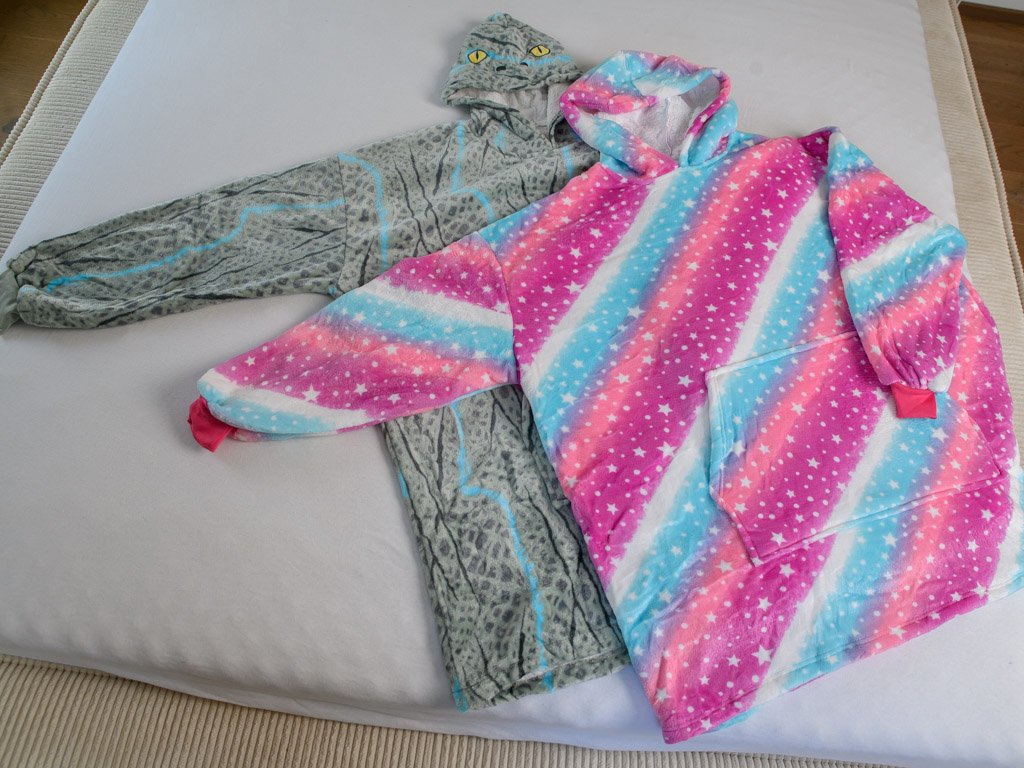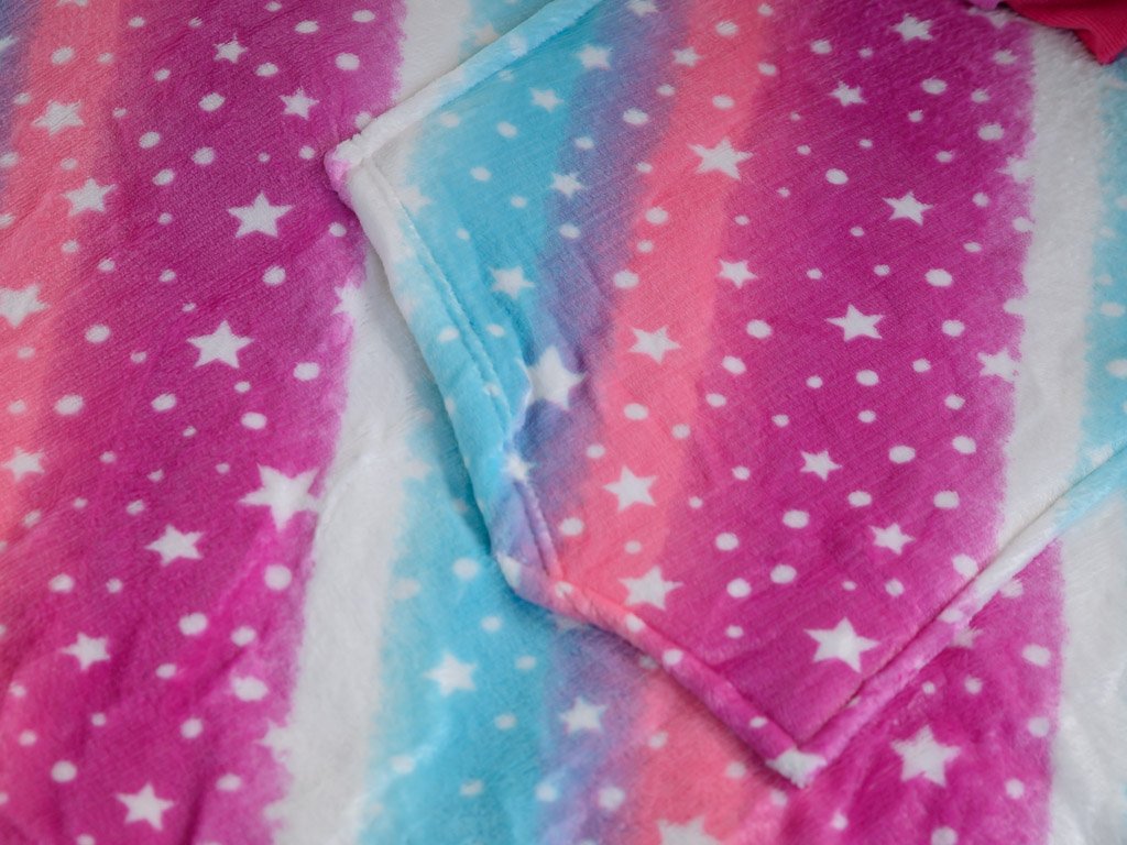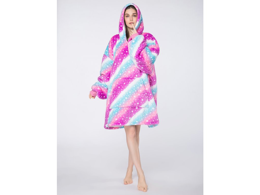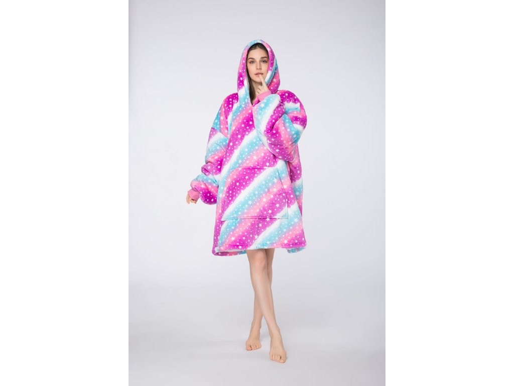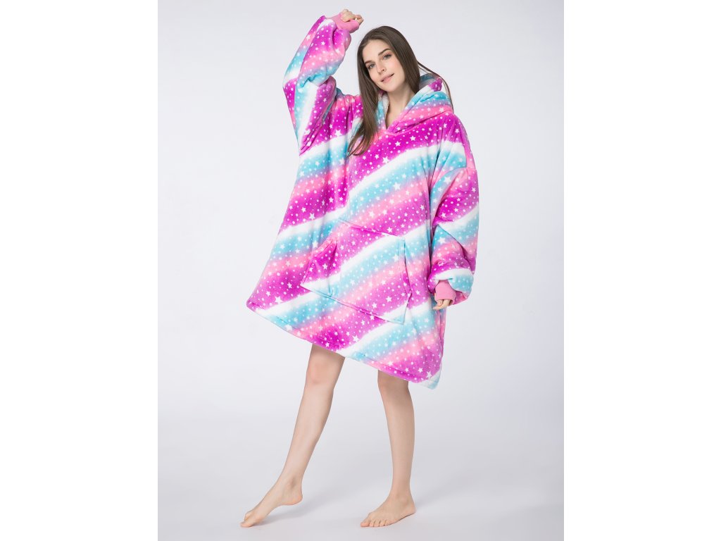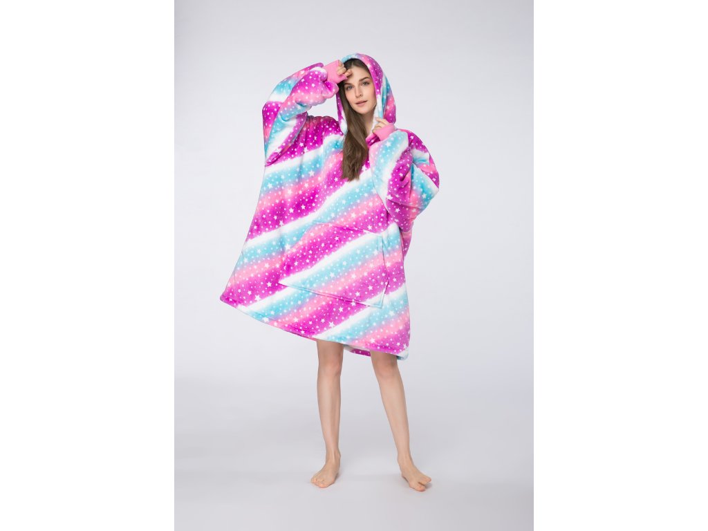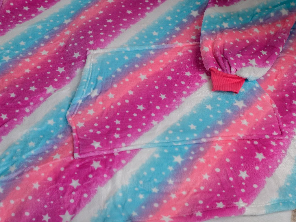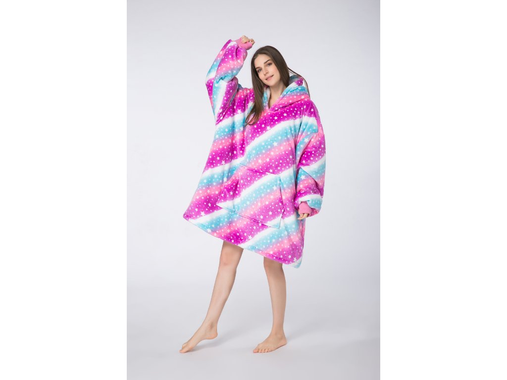 Topla deka s imitacijom ovčjeg krzna, s rukavima i kapuljačom AURORA šarena