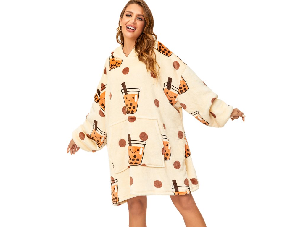 Topla deka s imitacijom ovčjeg krzna, s rukavima i kapuljačom BEVERAGE krem