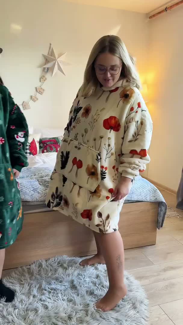 Topla deka s imitacijom ovčjeg krzna, s rukavima i kapuljačom PAPAVA, krem boje