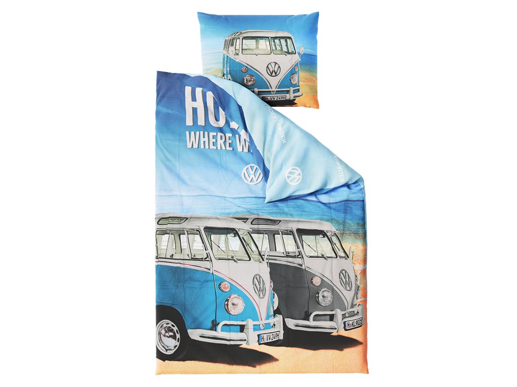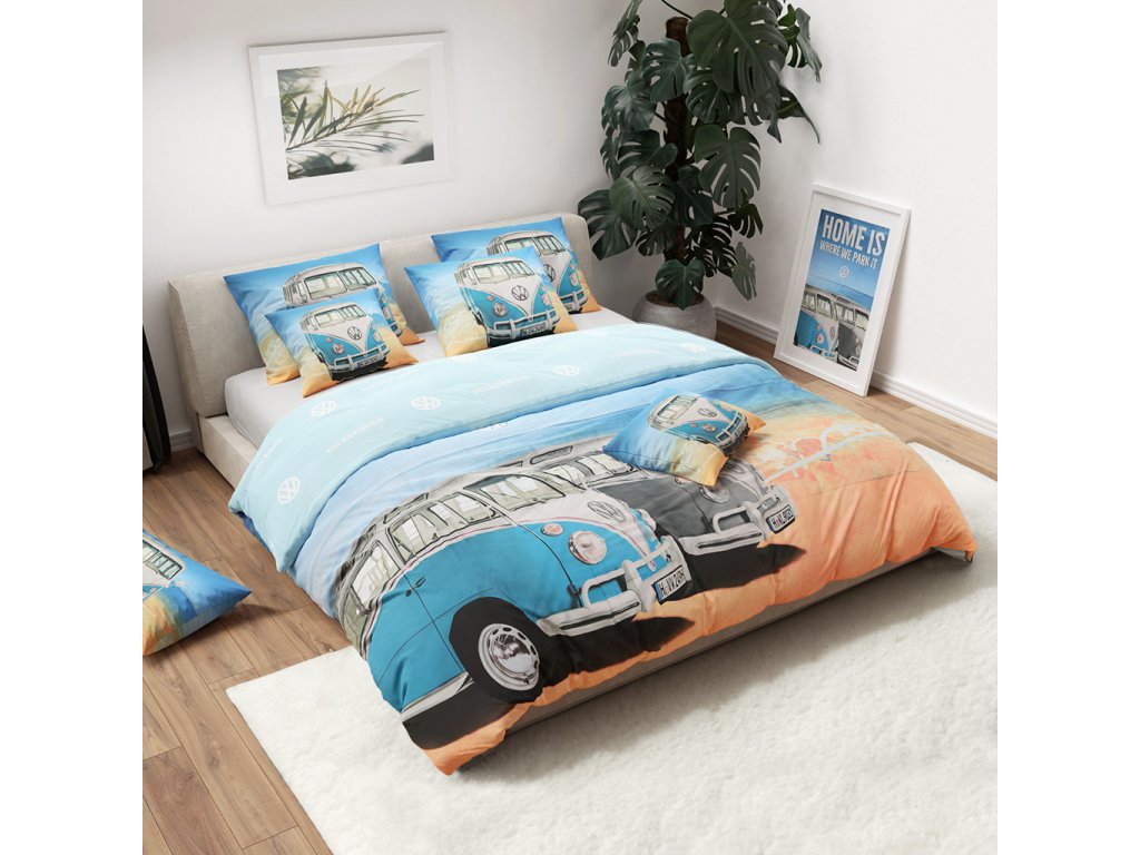 Dječja posteljina AUTO DUO VW plavo-narančasta