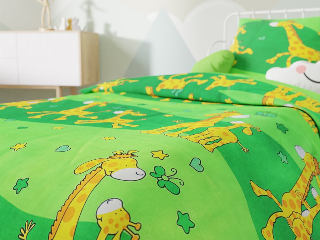 Pamučna posteljina za krevetic Žirafa zelena