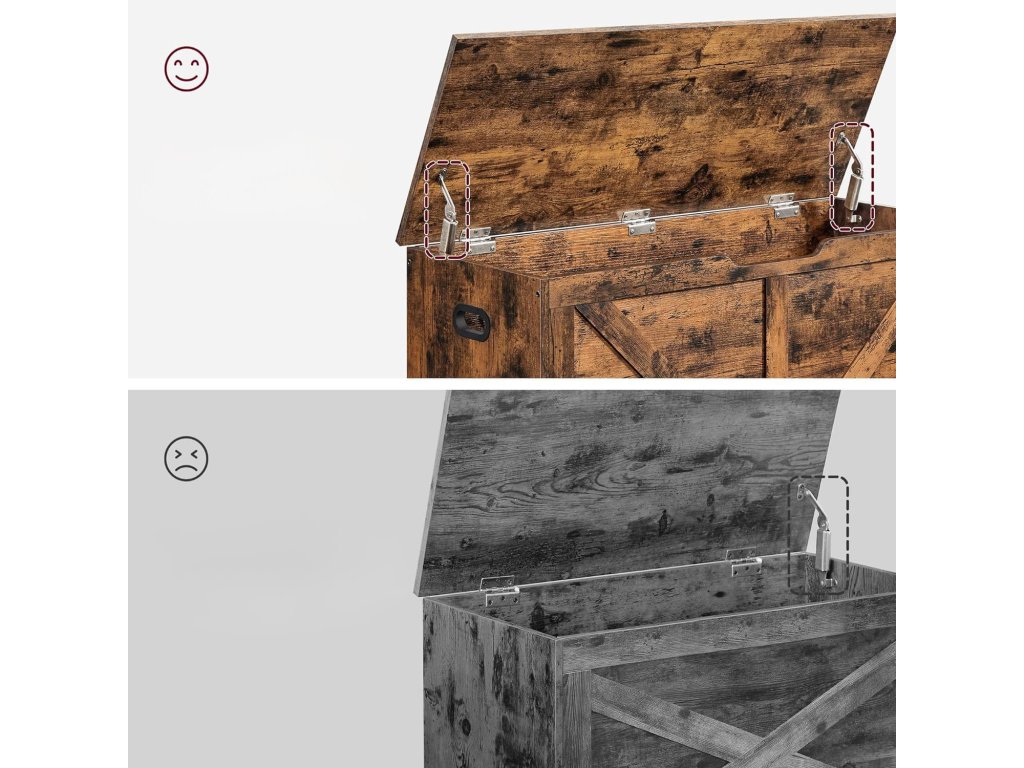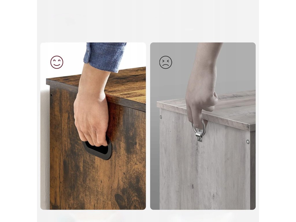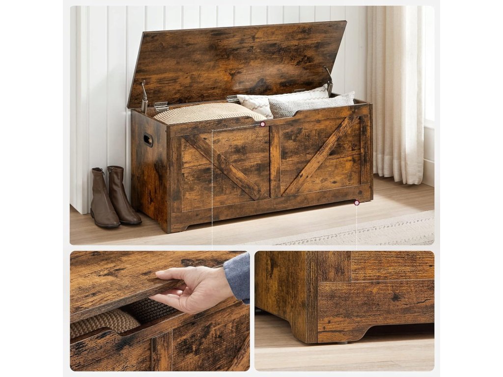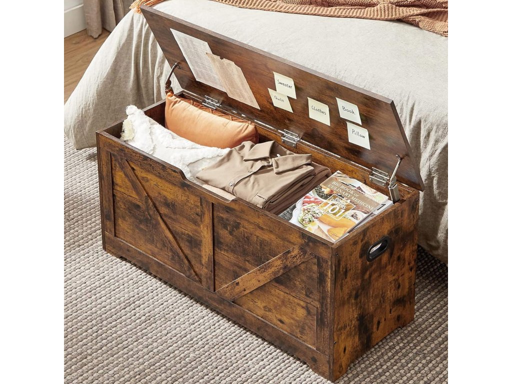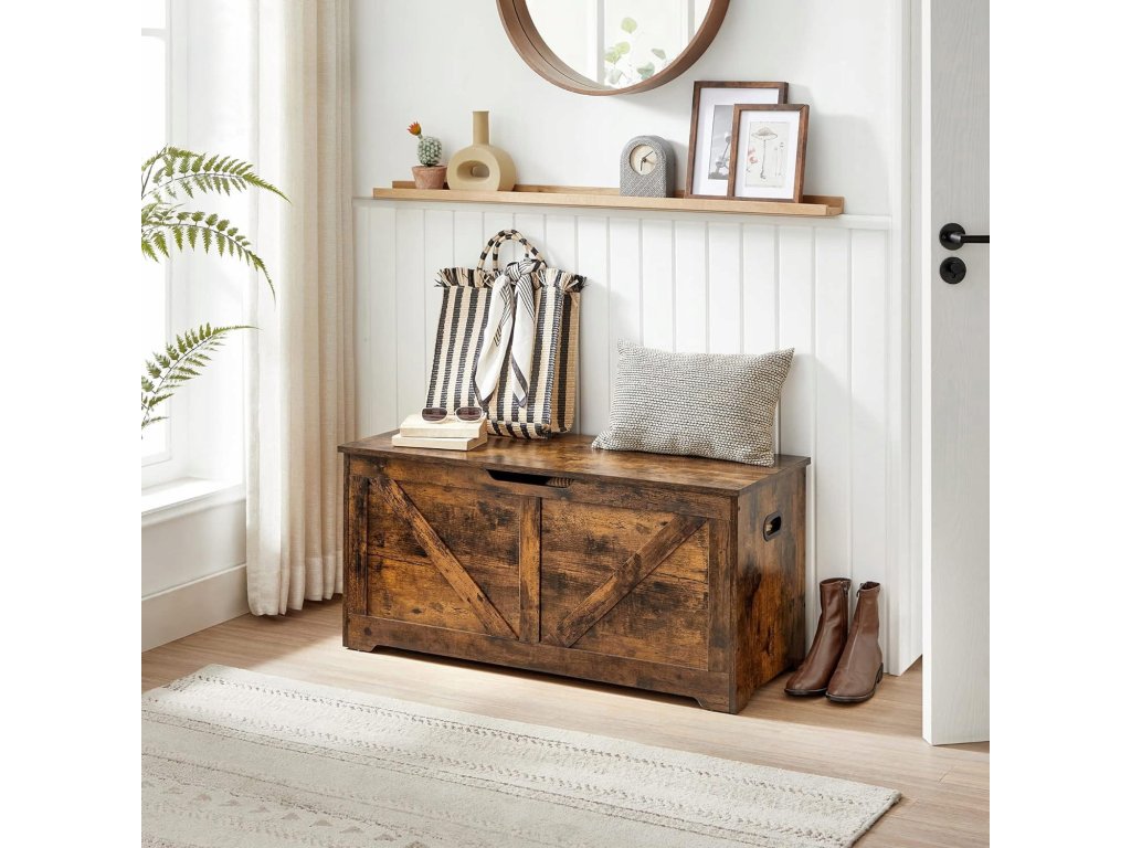 Tražite praktičan prostor za pohranu koji će istovremeno obogatiti vaš interijer toplim i rustikalnim dodirom? Ova višenamjenska kutija kombinira funkcionalnost s dizajnom i savršeno je prikladna za pohranu sezonske odjeće, posteljine, dječjih igračaka ili potrepština. Možete je smjestiti uz krevet, u predsoblje ili dnevni boravak kao dekorativnu klupu. Zahvaljujući bočnim ručkama, rukovanje je lako, a robustan poklopac može poslužiti i kao sjedenje. Idealno rješenje za one koji žele imati sve na svom mjestu i istovremeno stiliziran dom.