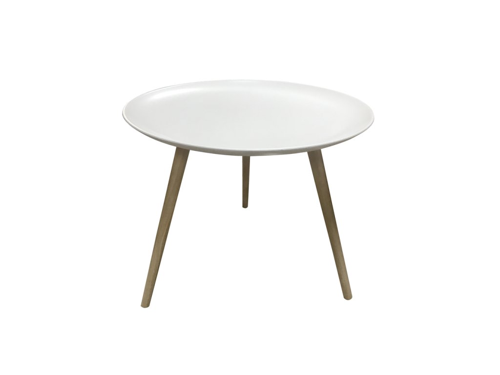 Odlagališni stolić ISLAND u bijeloj boji s okruglom pločom promjera 54 cm privlači pažnju svojim čistim linijama i kombinacijom nježnog dizajna s prirodnim materijalima. Laka ploča od MDF-a u mat bijeloj specifikaciji počiva na čvrstim ukošenim nogama od masivnog drva, koje stoliću osiguravaju stabilnost i vizualnu toplinu. Zahvaljujući kompaktnoj veličini, savršeno se uklapa kao pomoćni stolić uz sofu, u kutak za čitanje ili spavaću sobu. Njegov univerzalni stil lijepo će se uklopiti u skandinavski uređene interijere, no lako ga je kombinirati i s modernim ili prirodnim stilom – u kombinaciji s neutralnim tonovima, pastelnim bojama ili dodacima od prirodnih materijala istaknut će se njegova nježna elegancija.