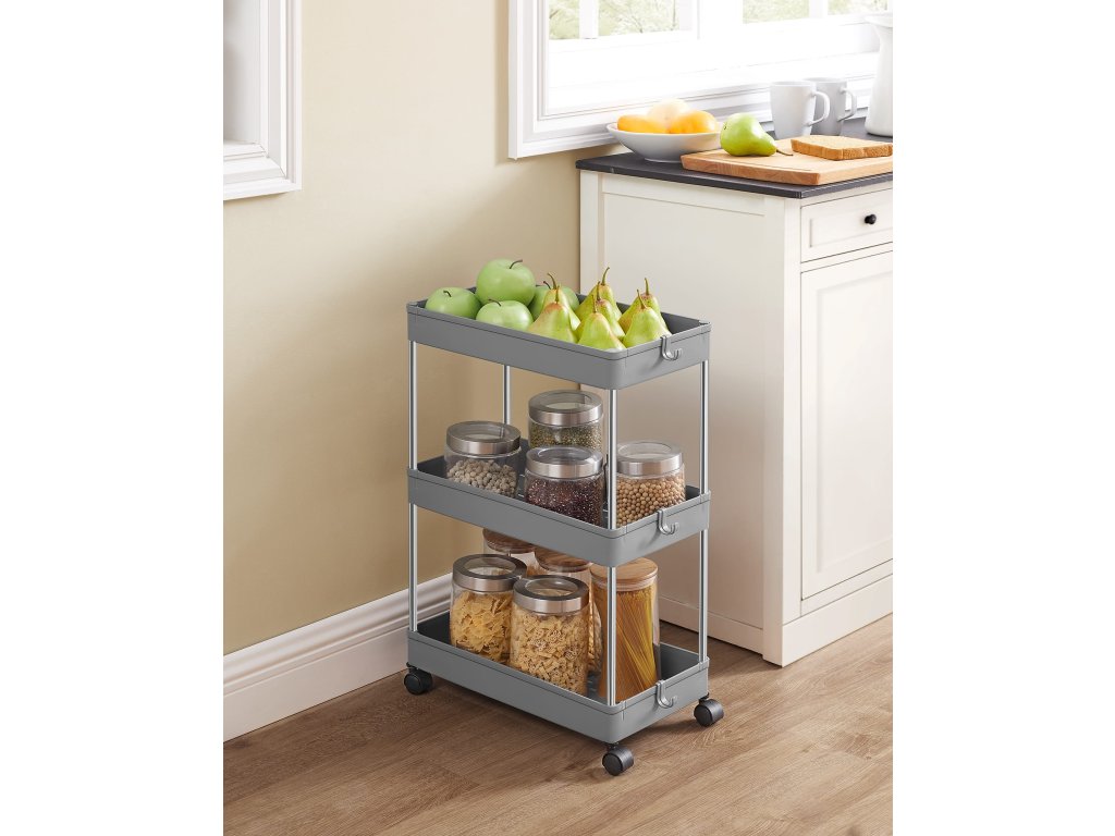 PROMOCIJA Multifunkcionalni regal na kotačima MOBIX s 3 košare, sivi II. kvaliteta