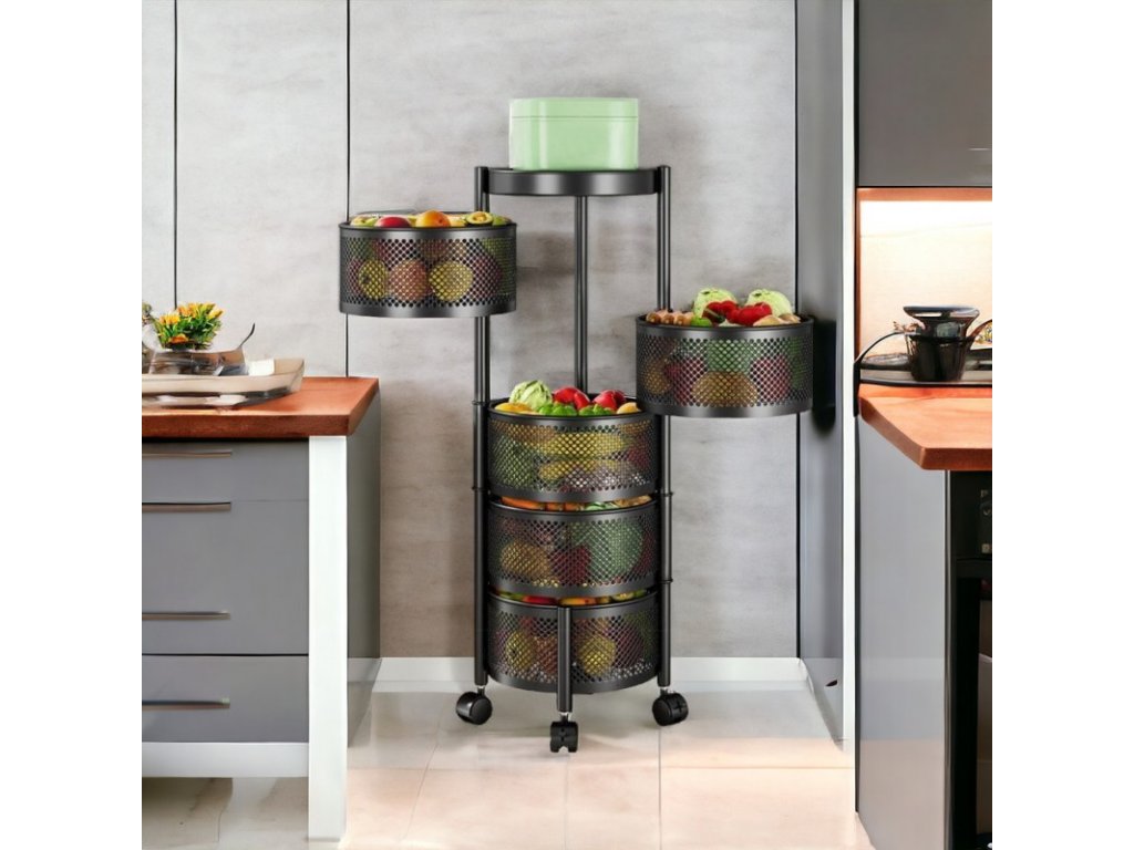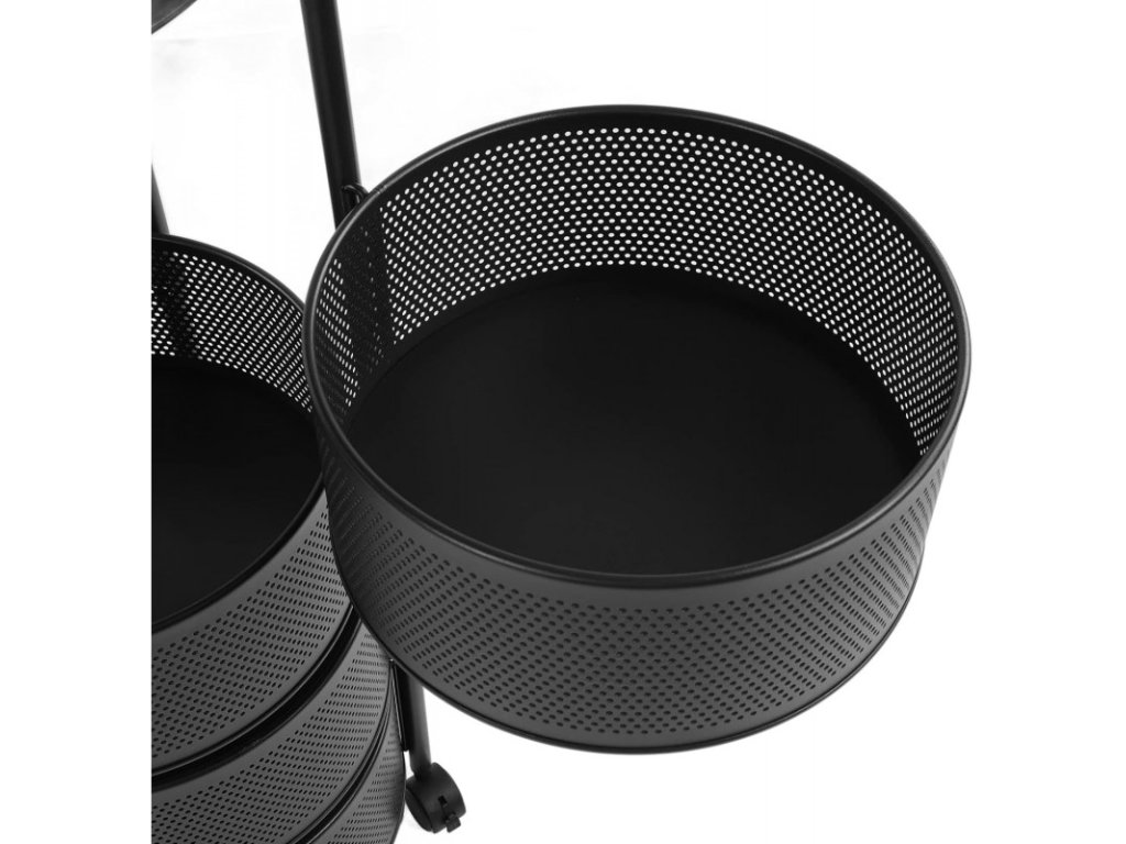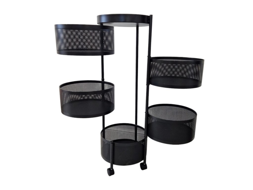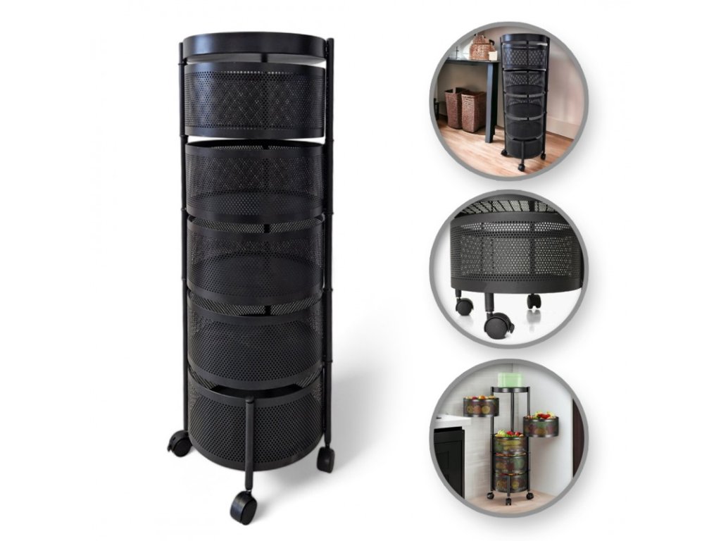 PROMOCIJA Otočni regal na kotačićima ROUND SZ33 s 5 košara, crni II. kvaliteta