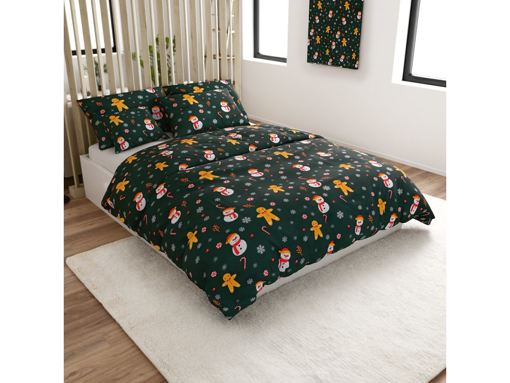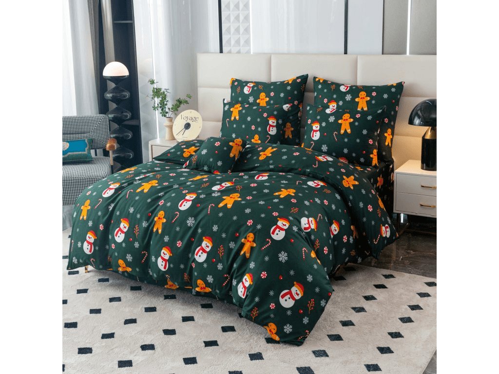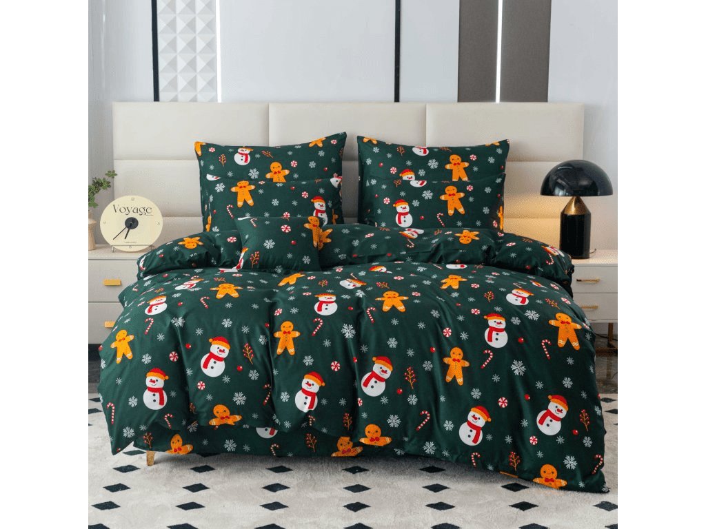 Flanel posteljina od mikrovlakana SNOWMAN AND GINGERBREAD zelena