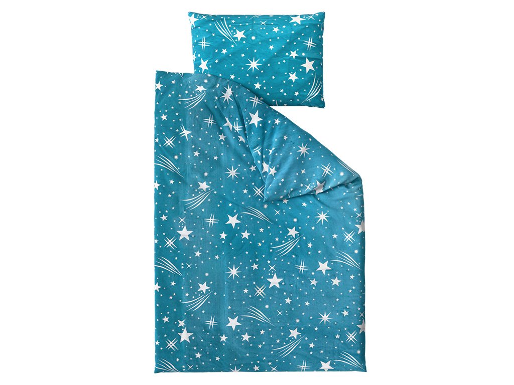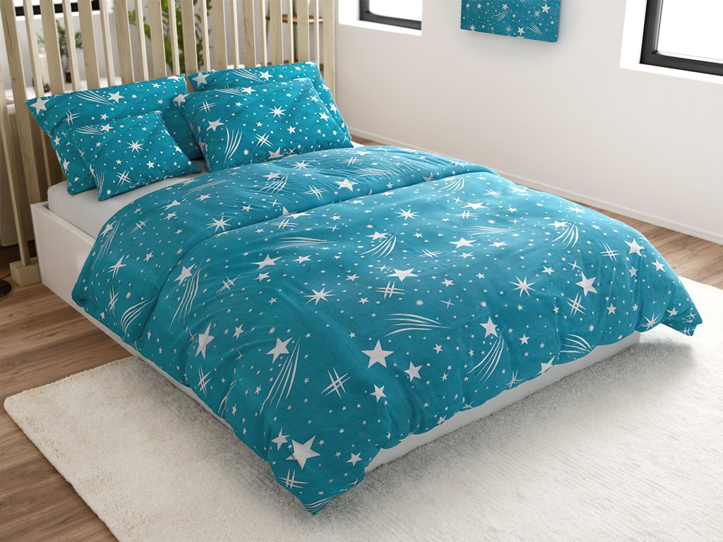 Uspavljivanje pod zvezdanim nebom tokom svakodnevnih dana i kod vas doma. Motiv zvjezdanog neba na diskretnoj posteljini zadovoljit će odrasle i djecu. Umirujuća i romantična atmosfera s daškom toplih letnjih dana sigurno će vas očarati. Magičnu posteljinu lako ćete uklopiti s svetlim enterijerom i neutralnim dodacima.