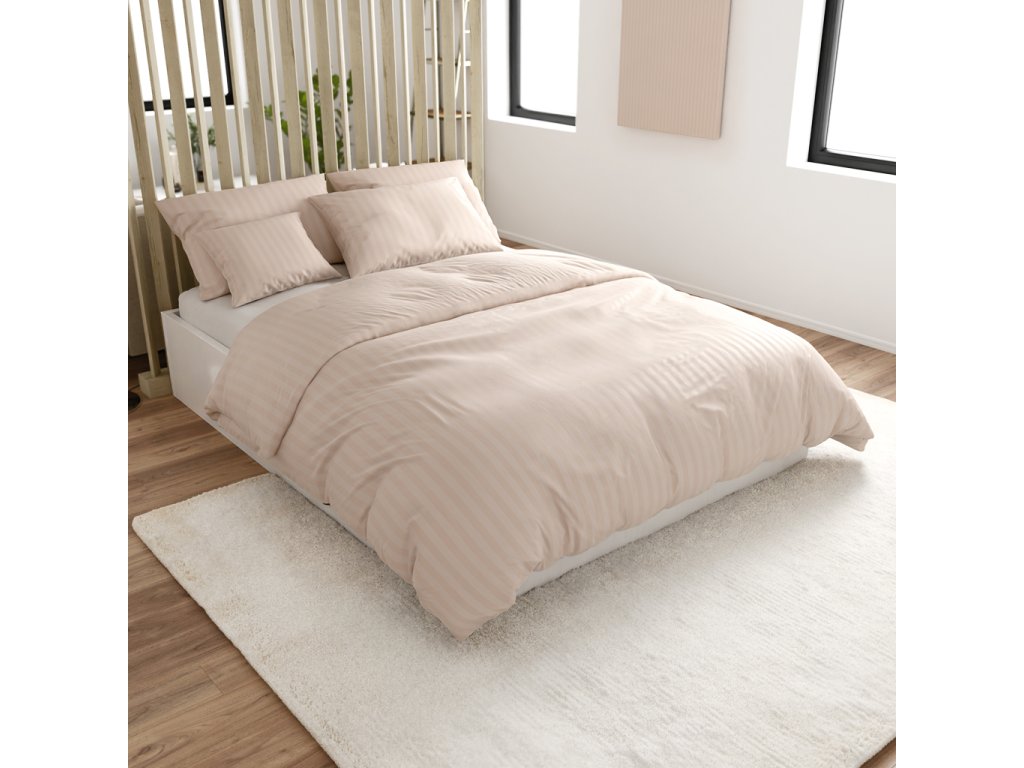 Hotelska posteljina od mikrovlakana JASMINE šampanj - pruga 2 cm, hotelski džep
