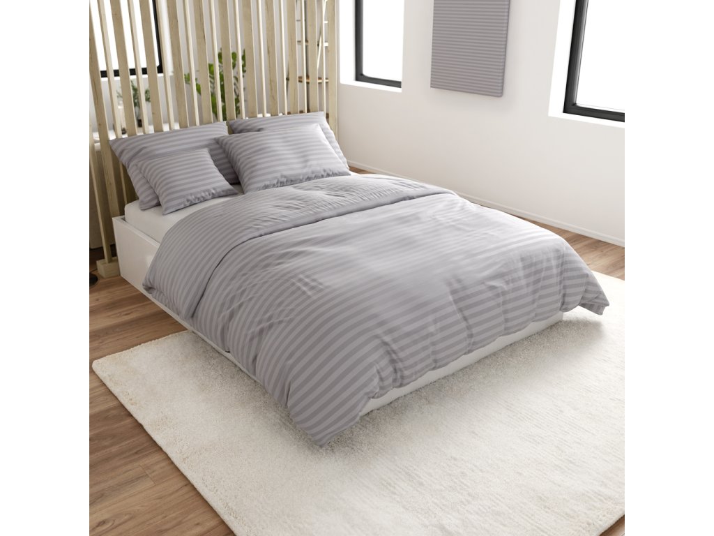 Hotelska posteljina od mikrovlakana JASMINE svijetlo siva - pruga 2 cm