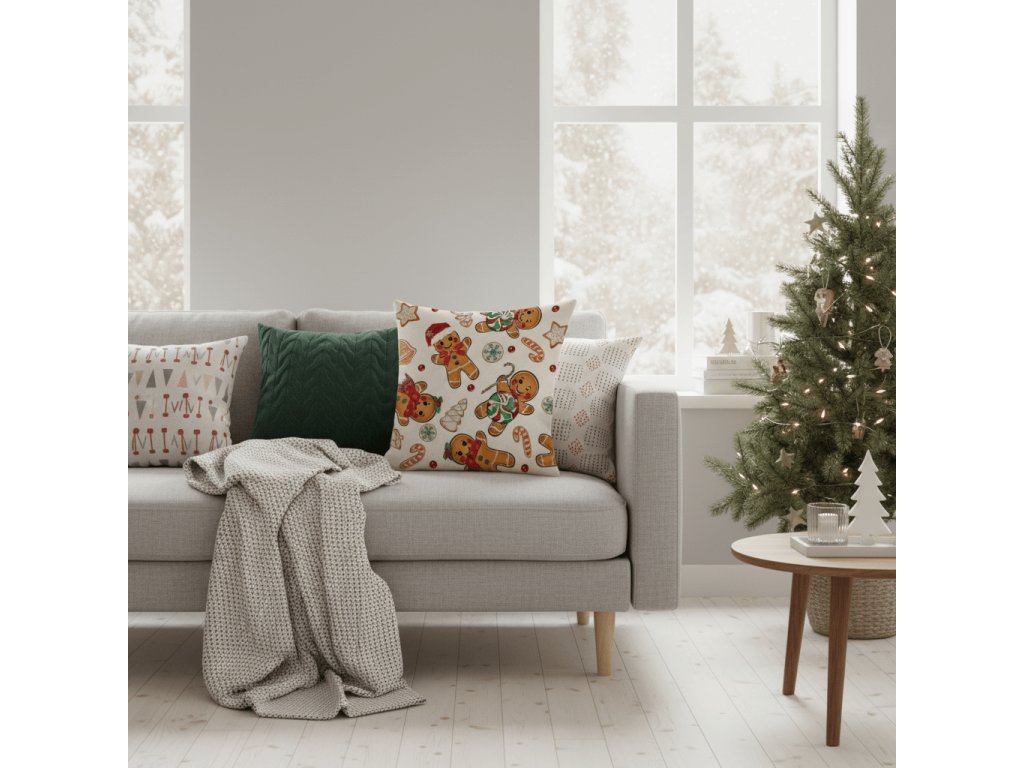 Božićna ukrasna jastučnica GINGER PARADE 45x45 cm, bež.