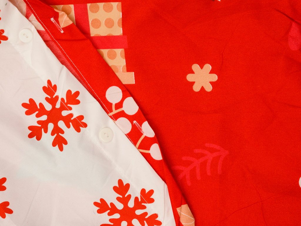 Set posteljine od mikropliša VELVET CHRISTMAS crvena + plahta od mikropliša SOFT 90x200 cm bijela, za jedan krevet