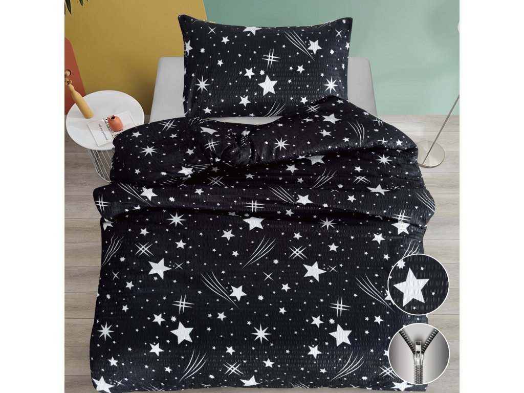 Uspavljivanje pod nebom prepunim zvijezda, tijekom običnih dana, i u vas doma. Motive zvijezdanog neba na decentnoj posteljini, zavoljet ce odrasli i djeca. Umirujuca i romantična atmosfera, sa daškom toplih ljetnih dana, sigurno ce vas očarati. Magičnu posteljinu lagano cete uklopiti sa svijetlijim interijerom.