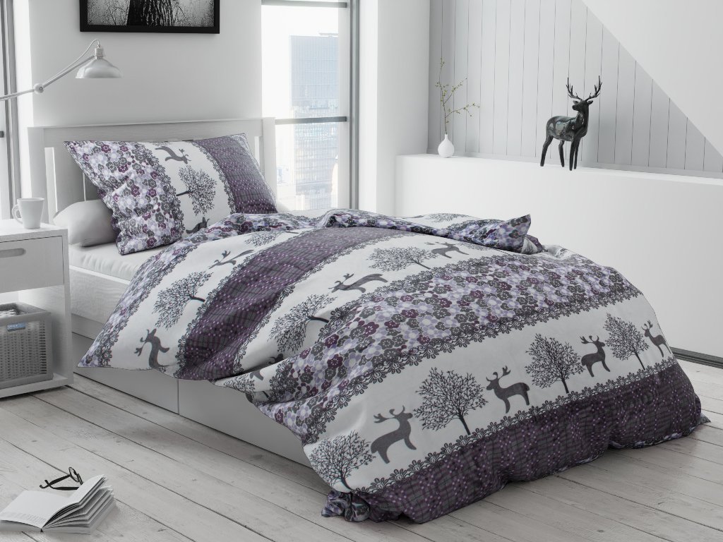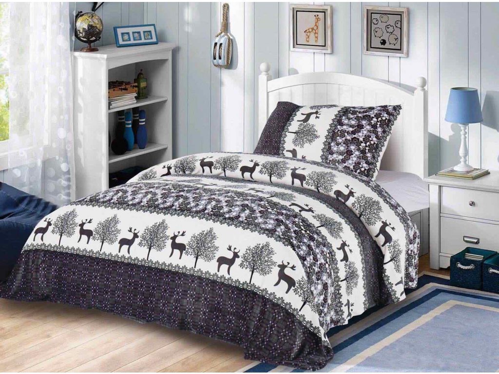 Posteljina od mikropliša BOŽICNI SOBI siva + plahta od mikropliša SOFT 90x200 cm bijela