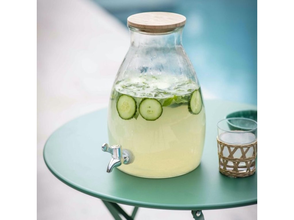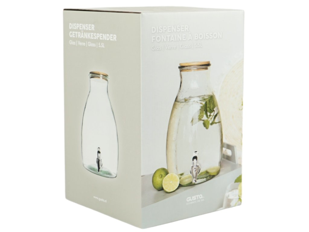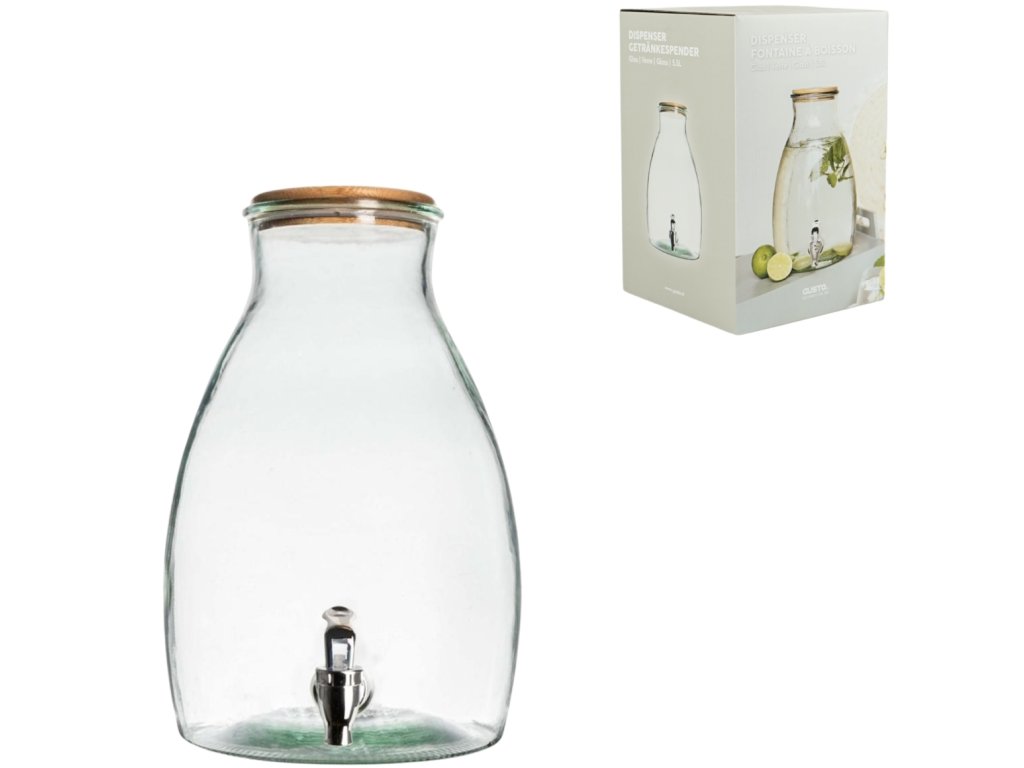 Stilski stakleni spremnik za napitke postat će praktični i estetski dodatak svakom domu. Zahvaljujući svom univerzalnom izgledu, prikladan je kako za ljetne vrtne zabave, tako i za božićni stol prepun punča. Omogućuje vam da imate osvježavajuće napitke uvijek pri ruci, a istovremeno pruža elegantan način za ugostiti obitelj i prijatelje. S ovim spremnikom, svakodnevni trenuci postaju ugodniji s lakoćom i stilom.