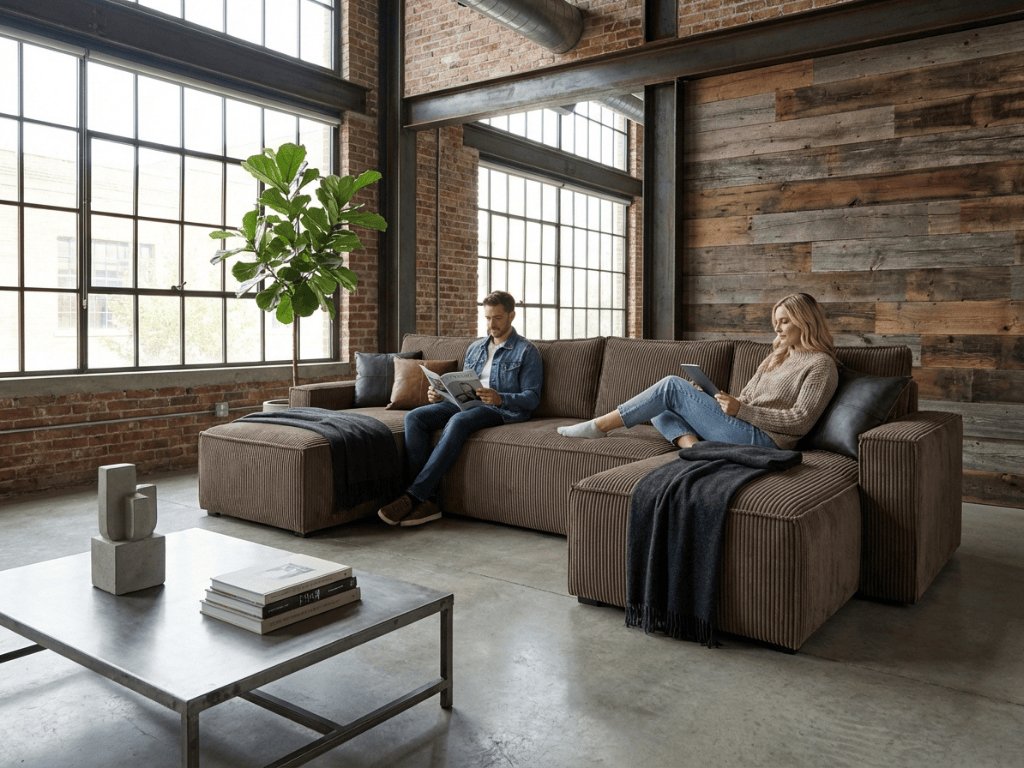 Kauč je presvučen Poso tkaninom s nježnom rebrastom teksturom, vrlo ugodnom na dodir, s visokom gramaturom od 380g/m2 i otpornošću na habanje. Sjedala kauča čine kvalitetna i dugotrajno oblikom postojana poliuretanska pjena upotpunjena valovitim oprugama. Konstrukcija kauča izrađena je od masivnog borovog i bukovog drva s dopunskim materijalom od iverice, šperploče i pilomaterijala.