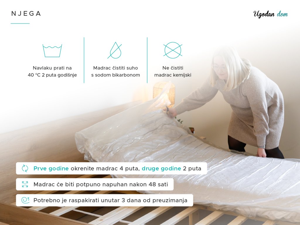 - Madrac redovito rotirajte - tijekom prve godine minimalno 4x, a sljedeće godine barem 2x