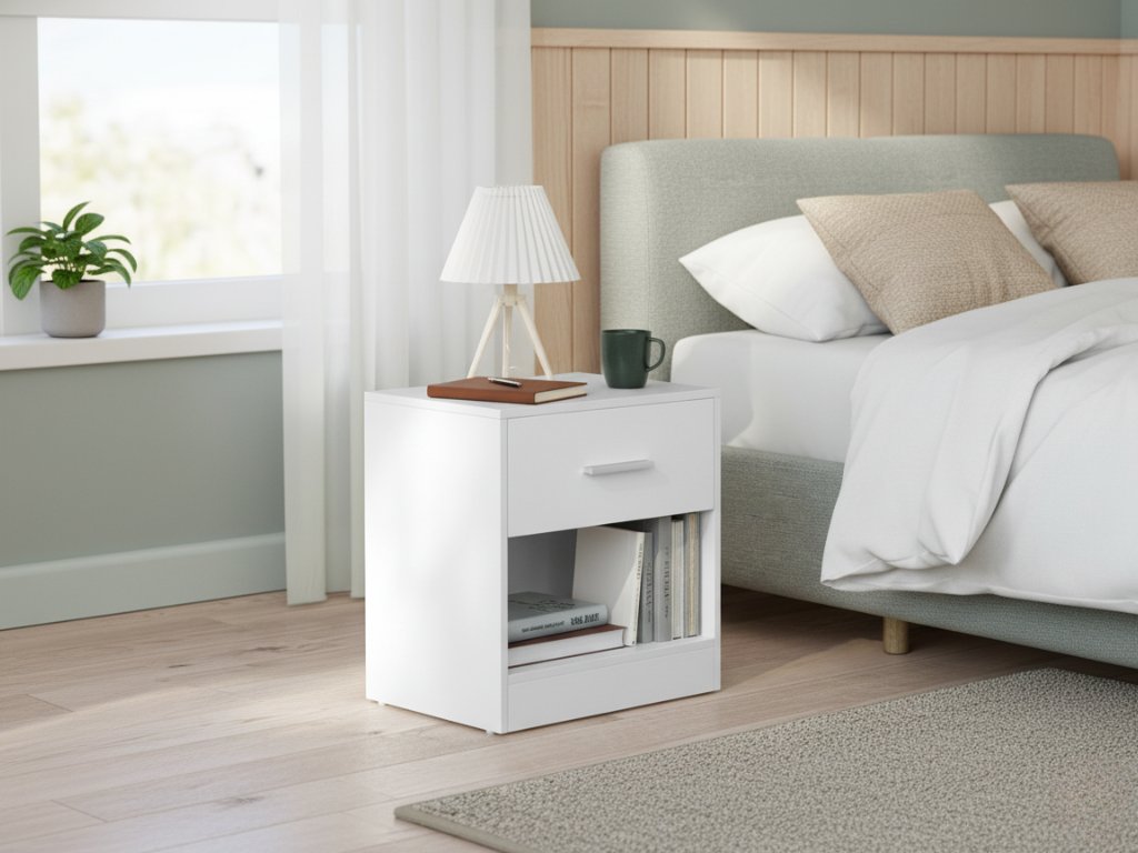 - Set 2 komada noćnih ormarića s ladicom i otvorenom policom