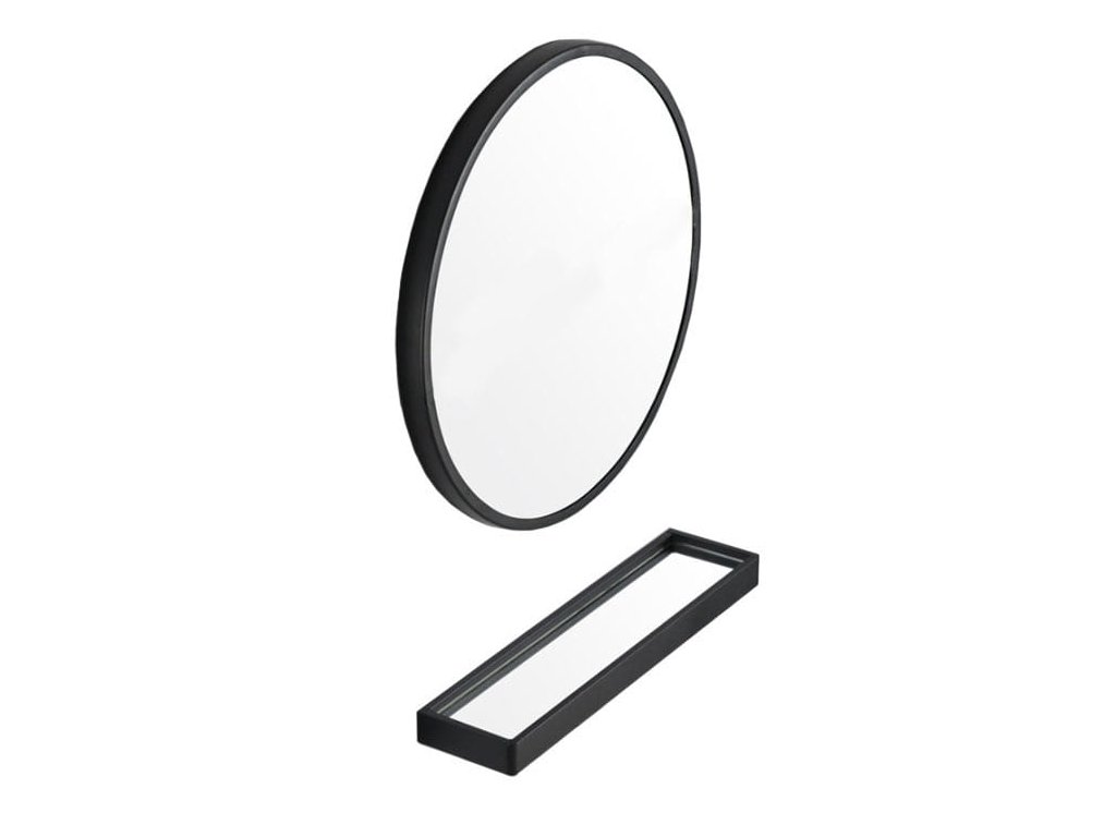 Crno okruglo ogledalo s policom BREDO Ø70 cm
