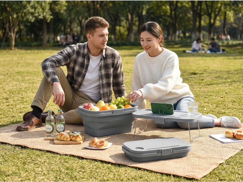 Sklopiva piknik košara TRIGO 3u1, siva