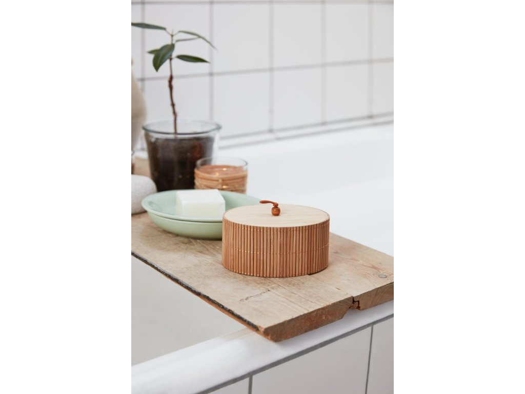 Spremište od bambusa je elegantan i praktičan dodatak za svaki dom. Najbolje se ističe u kupaonici, gdje pomaže organizirati sitnice i istovremeno dodaje prirodan dodir. Njegov jednostavan, ali stilski izgled uklapa se u moderne i rustikalne interijere. Savršeno je za kozmetiku, pamučne jastučiće ili primjerice nakit. Red može biti lijep — a s ovim spremištem i ekološki.