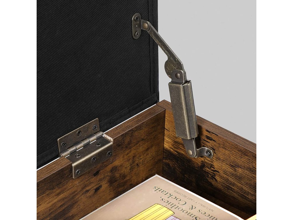 Ova praktična klupa za predsoblje spaja udobno sjedenje, dovoljno skladišnog prostora i stilski dizajn. Ispod poklopljenog sjedala nalazi se prostor za spremanje sitnica, dok donja mrežasta polica nudi mjesto za nekoliko pari cipela. Kombinacija rustikalne iverice, crnog metala i tapeciranog sjedala donosi vašem interijeru industrijski šarm. Idealno rješenje za svakoga tko traži funkcionalan i elegantan namještaj za predsoblje.