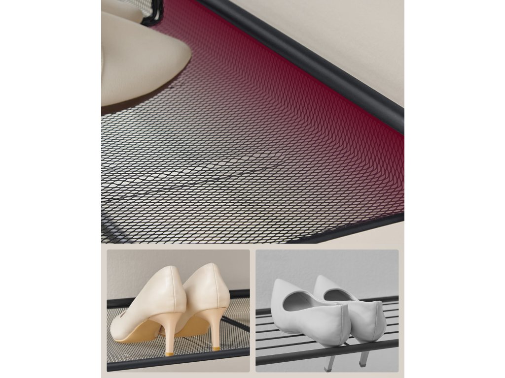 Ovaj stalak nije pogodan samo za organizaciju obuće, već zahvaljujući čvrstoj konstrukciji može nositi i teže predmete, kao što su sportska oprema ili dekorativni dodaci. Perforirane police omogućuju dobru cirkulaciju zraka, što pomaže održavanju obuće svježom i suhom. Njegovu univerzalnu primjenu cijenit ćete u svakoj prostoriji gdje vam treba praktičan i istovremeno stilski prostor za odlaganje.
