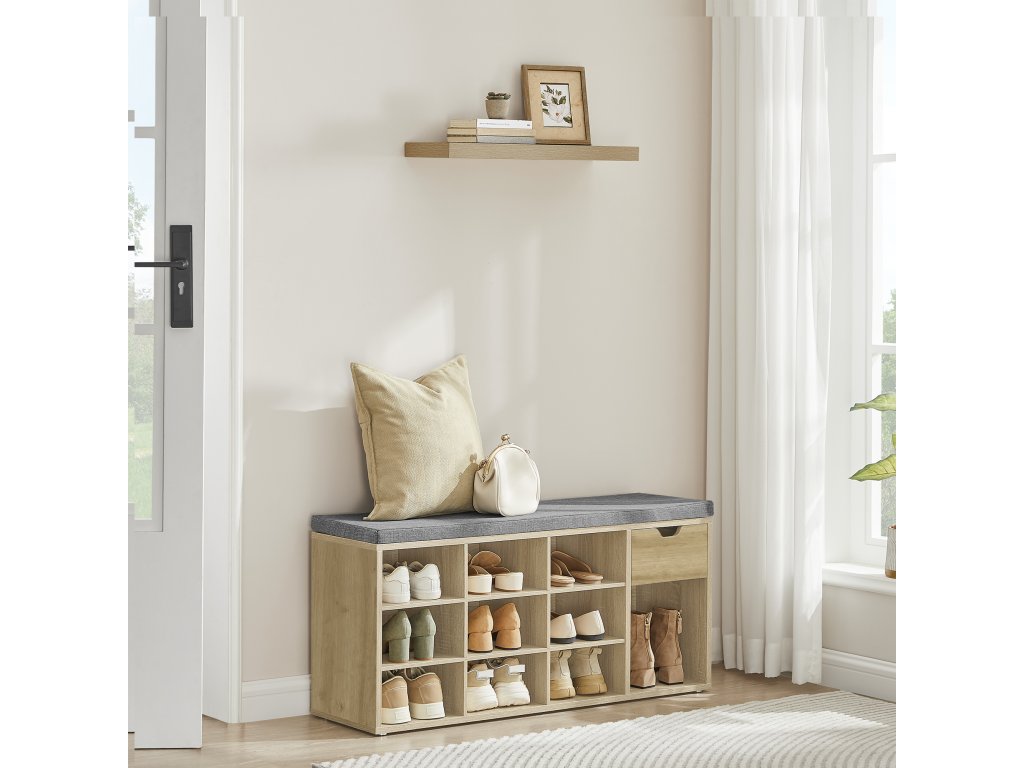 Ovaj ormarić za cipele s integriranom klupom predstavlja funkcionalno rješenje za svaki ulaz. Povezuje udobno sjedenje pri obući s dostatkom prostora za pohranu cipela, dodataka ili sitnica koje želite imati uvijek pri ruci. Otvoreni pretinci i zatvoreni prostor omogućavaju pregledno organiziranje obuće i pomažu održati red i u prometnijim kućanstvima. Zbog kompaktnih dimenzija, prikladan je i za manje ulaze, gdje maksimalno iskorištava dostupan prostor. Tapecirano sjedalo osigurava udobnost i ujedno naglašava moderan izgled ormarića, koji se lako uklapa u različite stilove interijera.