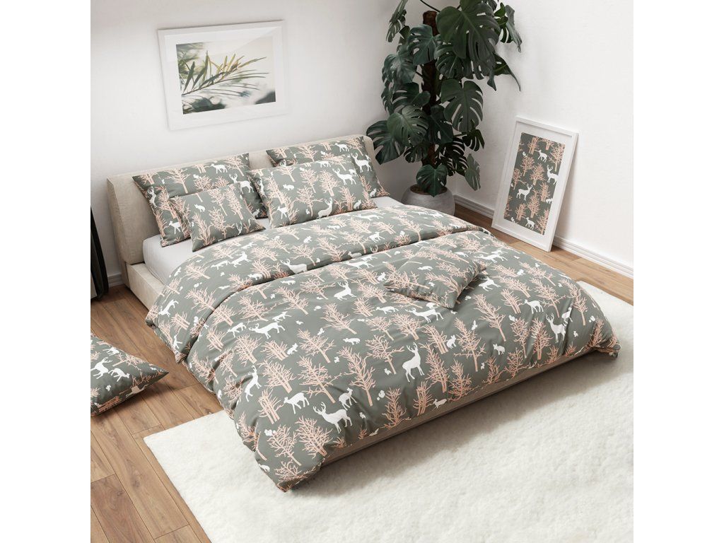 AUTUMN WOOD siva pamučna posteljina