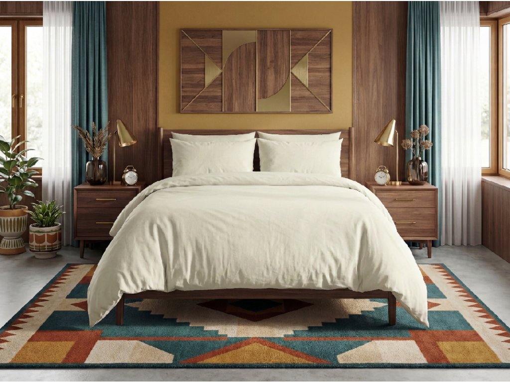Pamučna posteljina CALMORA svijetlo bež unosi u spavaću sobu mir, nježnost i bezvremensku eleganciju. Ova neutralna nijansa ostavlja topao i prirodan dojam, čime stvara harmoničnu atmosferu idealnu za svakodnevni odmor. Svijetlo bež boja čini prostor ugodnijim i daje mu lagan, prozračan izgled.