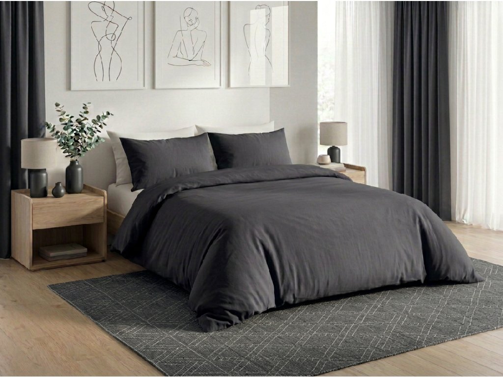 Pamučna posteljina CALMORA tamno siva