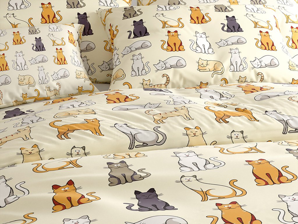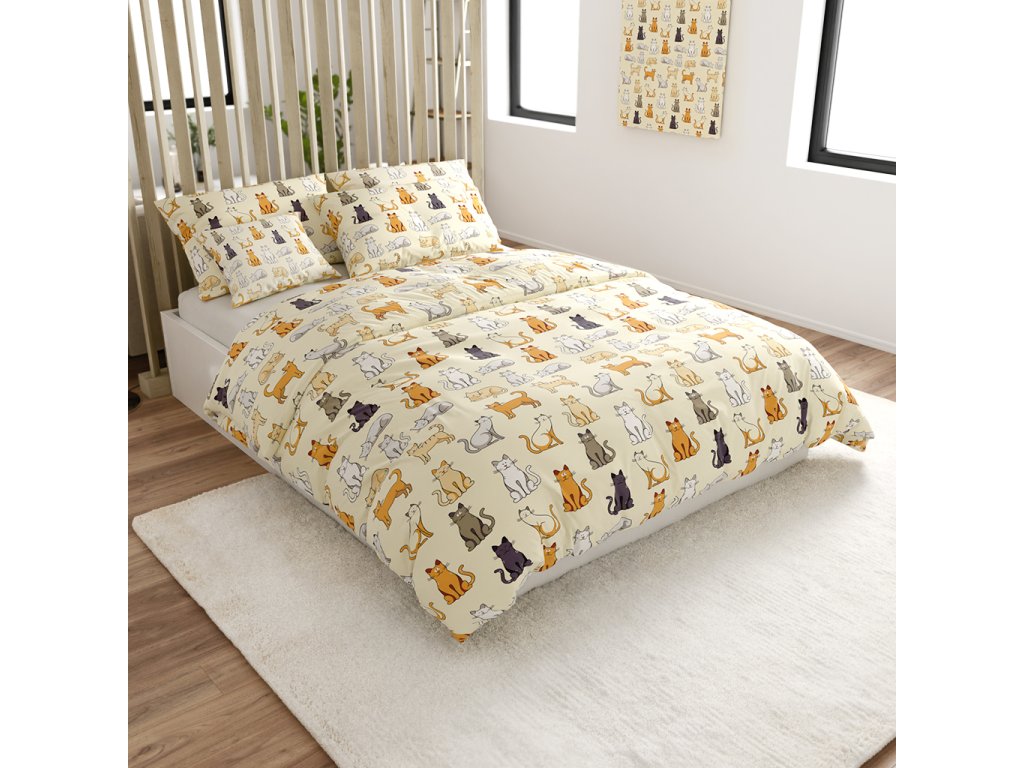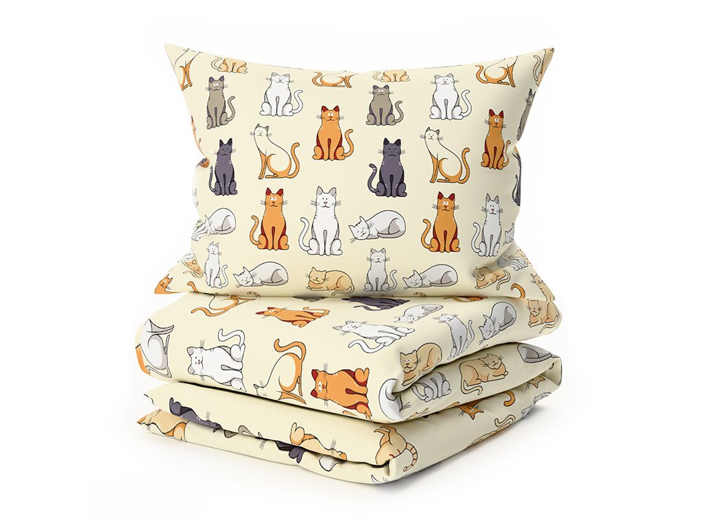 Pamučna posteljina COLORED CATS BLEND krem
