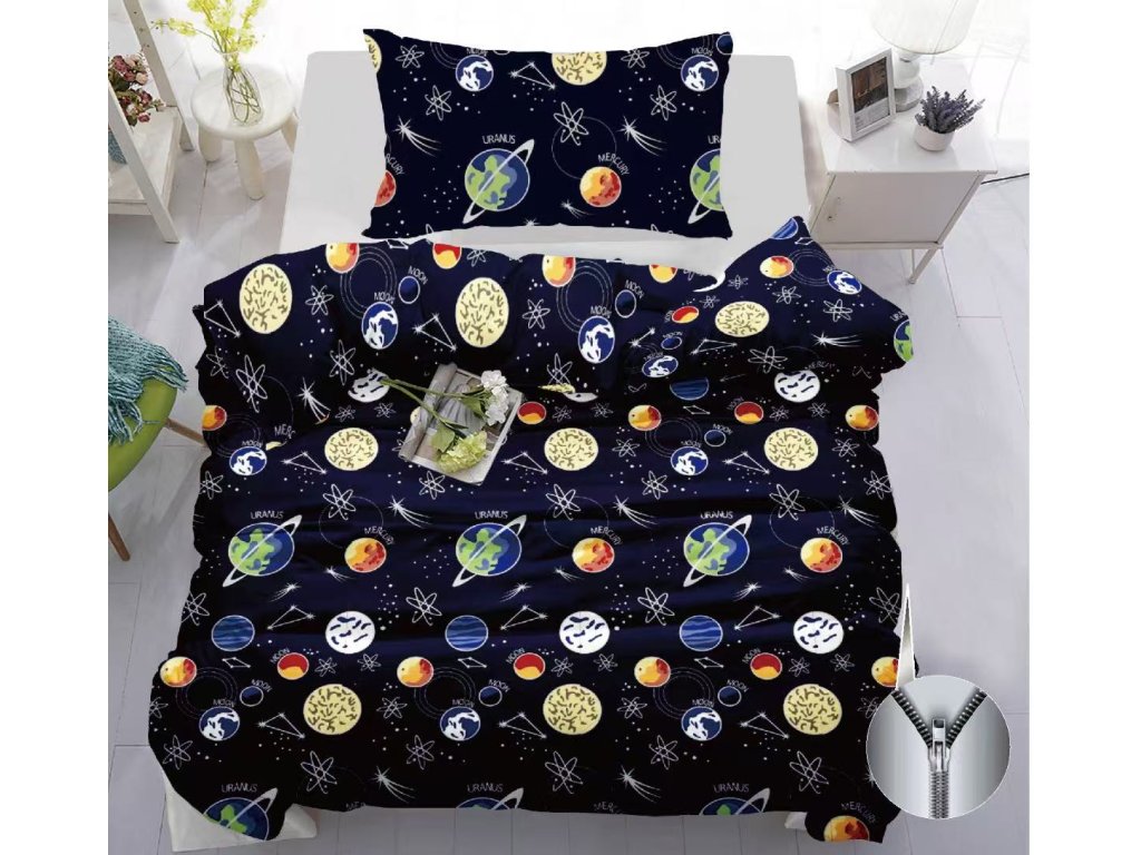 Pamučna posteljina PLANETS tamno plava